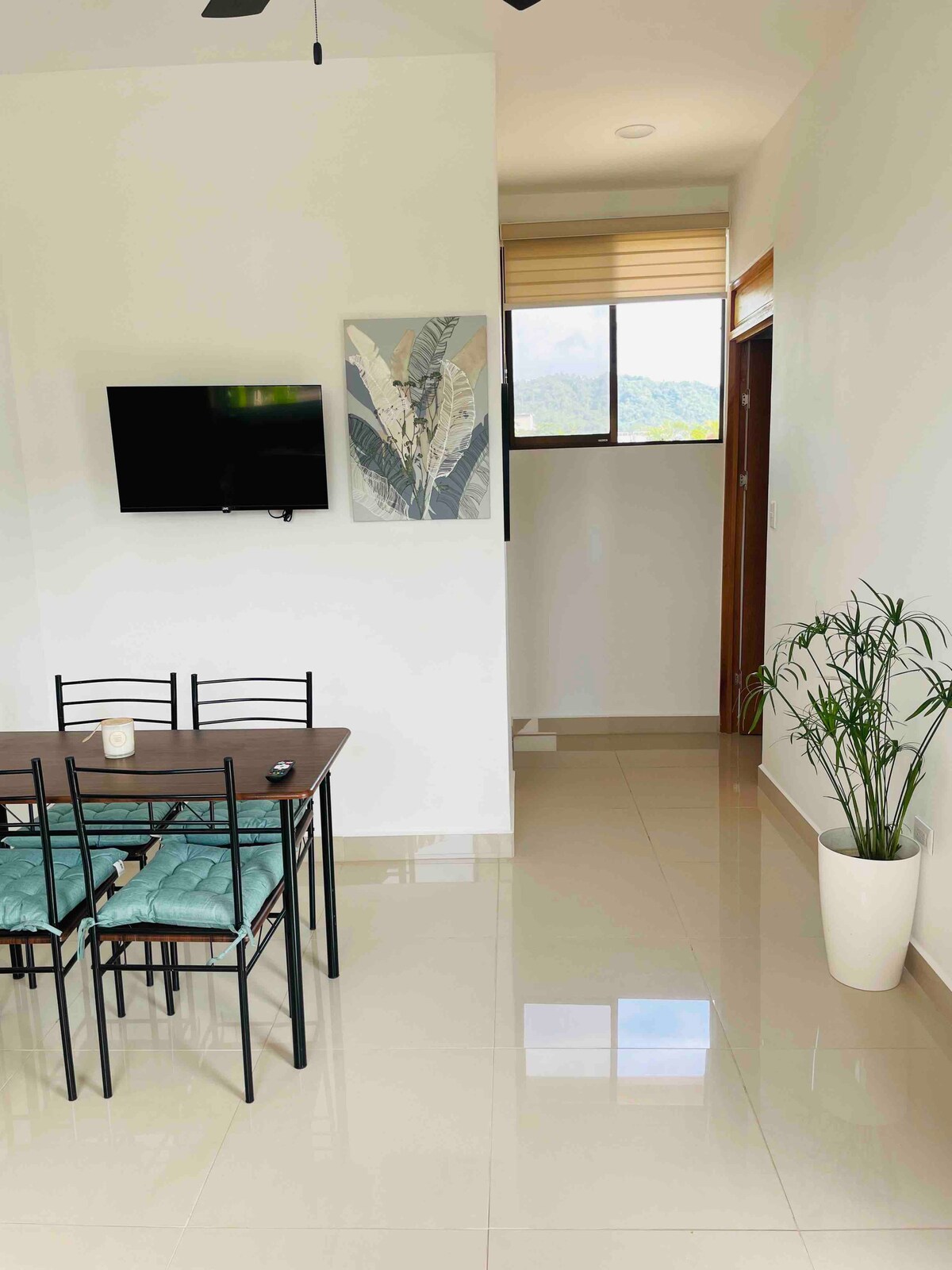 Apartamento en el segundo piso con una gran terraza de espacio abierto con una hermosa vista a la montaña. Perfecto para hacer ejercicio, hacer yoga o simplemente montar en la hamaca. Incluye internet de alta velocidad para aquellos nómadas que trabajan en todo el mundo. A solo 2 millas de la hermosa playa de Jaco. Barrio seguro, comunidad amable y un entorno limpio, lo que lo convierte en el lugar perfecto para una escapada acogedora.