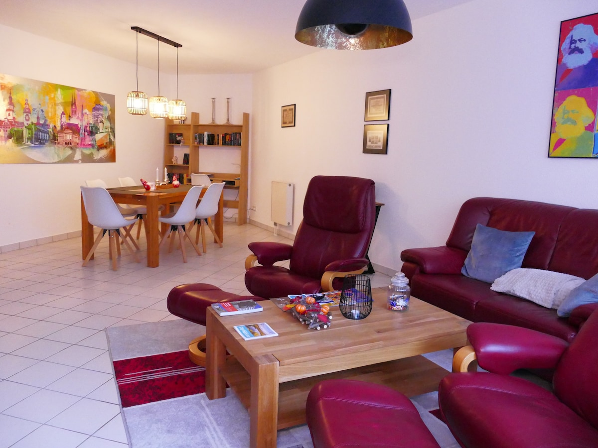 Disfruta de una experiencia elegante en este alojamiento céntrico. La ubicación ofrece muchas posibilidades de excursiones. A 3 minutos. Camina hasta el Citybahn hasta Chemnitz (Capital de la cultura 2025 con muchos eventos), a 5 minutos. A poca distancia de la piscina al aire libre y la cervecería al aire libre en la subestación. Un montón de opciones de ciclismo y senderismo en los alrededores. Pequeños mercados navideños hermosos y tradicionales en diciembre, salones, castillos que quieren ser explorados, Tierpark en Chemnitz