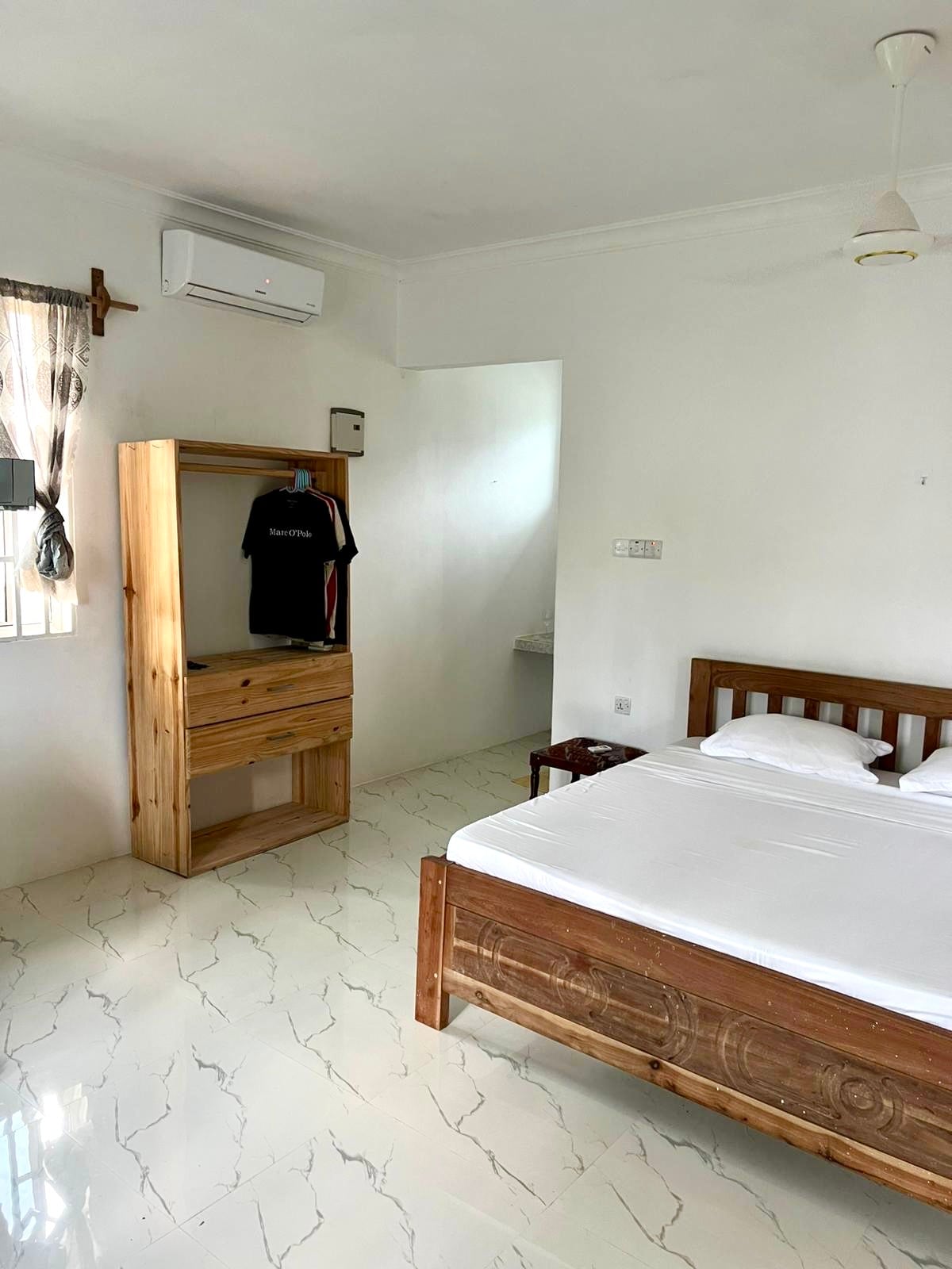 Cómodo apartamento con aire acondicionado a 100 m de la playa. Cocina pequeña, wifi rápido, ubicación tranquila, comidas caseras y traslados disponibles. Un cómodo apartamento en la planta superior con aire acondicionado, baño privado y una cocina americana totalmente equipada. Perfecto para parejas que buscan privacidad, comodidad y un ambiente tranquilo. Disfruta de luz natural, wifi rápido y una ubicación tranquila, que ofrece una estadía relajante y cómoda en Jambiani con una cálida hospitalidad local.