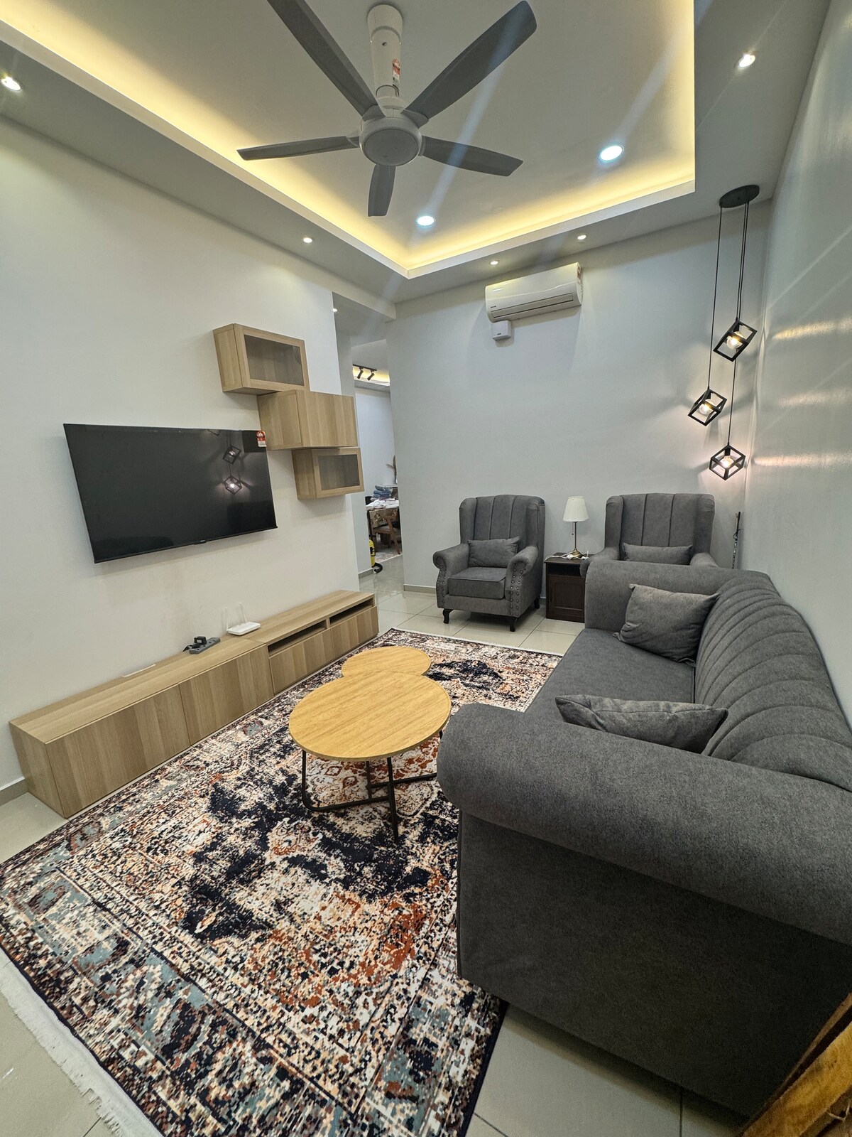🏡 Trylar Homestay Jasin, Melaka 🏡 📍 Pangsapuri Jasin Bestari Block B, Ground Floor (JC7475) 1042sqft ✨ Cozy • Spacious • Affordable ✨ Fit for groups of >6 adults 🛏️ 3 Bedroom & 2 Bathroom (sitting toilet) Room 1: 1 King Bed + Aircond + Water Heater Room 2: 1 Queen Bed + Fan Room 3: 2 Single Beds + Fan Living Room: Sofa + Fan 🌿 Relaxing Balcony & Laundry Area ✔️ Sofa ✔️ Smart TV+Wi-Fi ✔️ Refrigerator & Microwave ✔️ Cooking Utensil ✔️ Washing Machine ✔️ Iron & Bath Towel