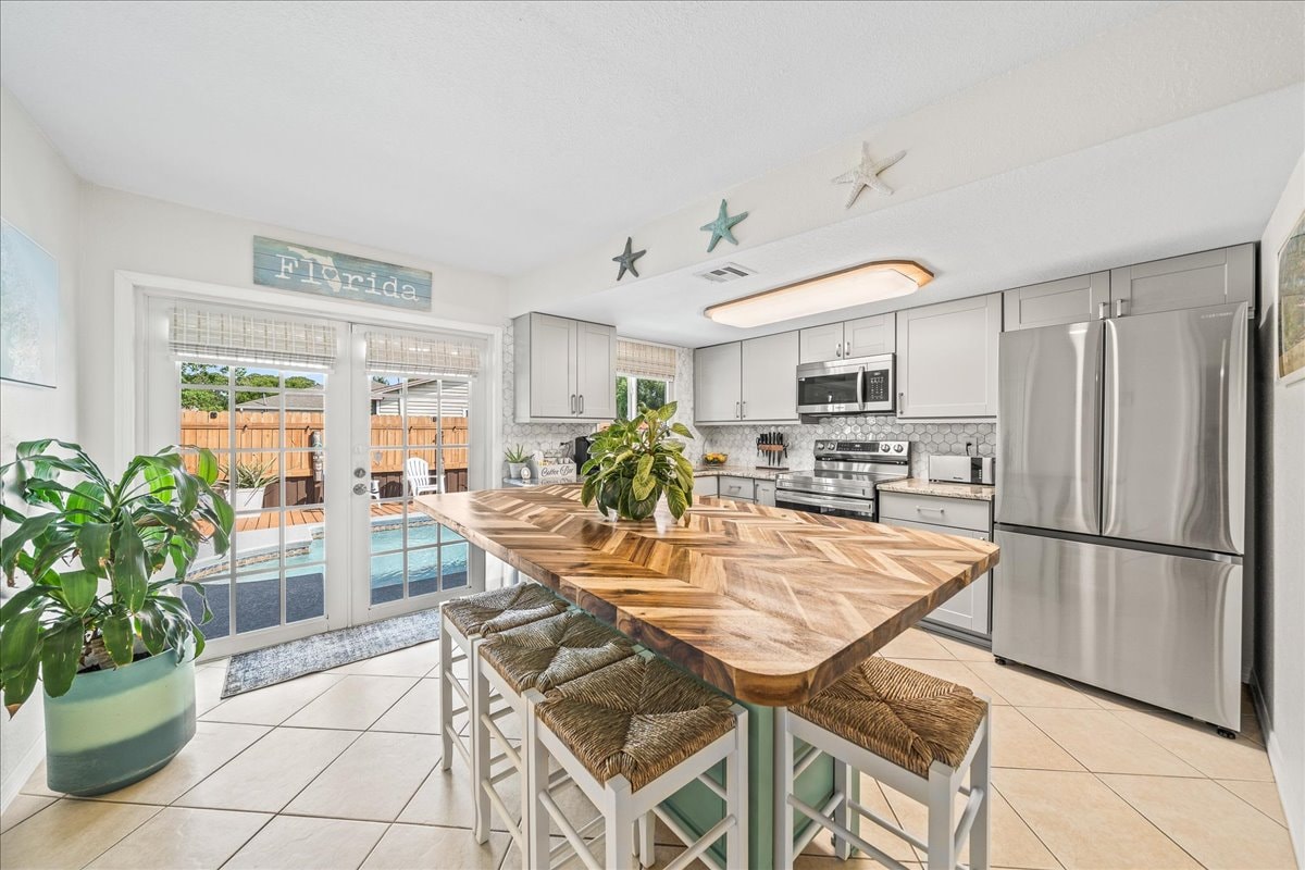 PISCINA DE CÓCTELES: PATIO TRASERO VALLADO. 🏖️Disfruta de una experiencia elegante en nuestra casa céntrica. “East of 1 Surf House” está a solo 1 milla de South Beach, en bicicleta a la playa (se proporciona bicicleta) ,nuestra hermosa playa local, todo lo que necesitas, desde camas cómodas,todo en tu NUEVA cocina,lavandería, sala de estar, pérgola al aire libre y ducha caliente/fría. Tiendas de comestibles y restaurantes a poca distancia en auto o a pie. Distrito de arte y parque Riverside a 5 minutos. Vero Beach Marina a 5 minutos, Miracle Mile a 5 minutos