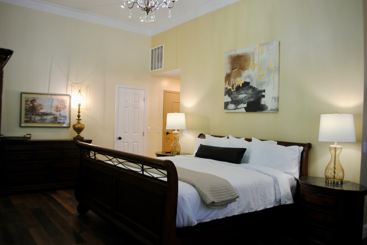 Magistrate Room at The Lodge is located in a 1904 historic bldg in downtown Jefferson City, adjacent to Carson Newman University, 2 miles from Cherokee Lake, historic Glenmore Mansion, and several local eateries. The Magistrate has 1 King Bed and for an additional small charge, an additional small bedroom (Eagles Nest) with a Full bed. Currently, our beautifully restored building houses the Heritage Center at Mossy Creek, Kneads Doughnuts, Patriot Wood Fired Pizza, and 3 upscale lodging rooms.