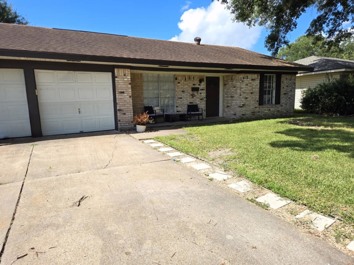 ¡Sensación de mamá y papá! CASA PRIVADA y ESTACIONAMIENTO TOTALMENTE FUNCIONAL. Pintoresca, casa de campo privada, escondida en una calle sin salida lejos de otras casas. Acogedor, capacidad para 4 personas, mucho estacionamiento seguro a la vista, WiFi, SmartTV, televisión local, acceso a tus cuentas de streaming. Lavadora/Secadora en casa. Árboles maduros y porche delantero con patio Ubicación céntrica: fácil acceso a los sitios de trabajo industrial. 2 millas=Interestatal 3 millas=SuperWalmart 3 millas=Restaurantes/Bar y Parrillas 14 millas=cines Barrio tranquilo/campo arbolado en la ciudad
