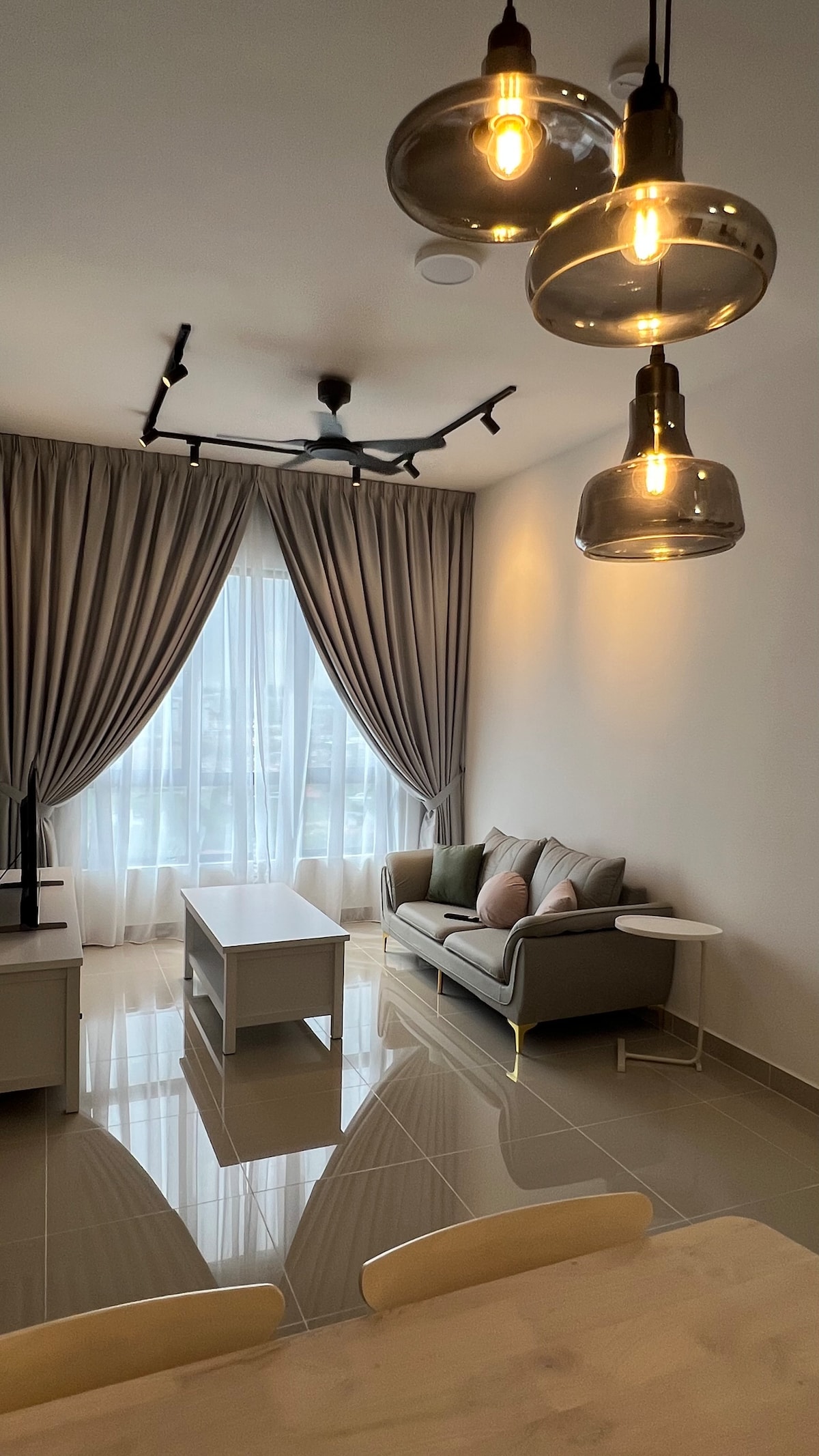 This is a Studio unit located at M city Jalan Ampang. Suitable for couple and small family. Most welcome Digital Nomad for Long stay. Room Offer: ✔one double bed ✔ Fully-Functioning Air-Condition ✔ Smart TV with Netflix ✔ Sofa ✔ Coffee Table ✔ Dining area AMENITIES -Hair Dryer -iron and board -kettle -refrigerator -Microwave -Washing Machine -Shampoo and Shower Gel -Shower Water heater -2 Shower towel -Toiletries -Wi-Fi (High-Speed Fibre Internet 300 Mbps)
