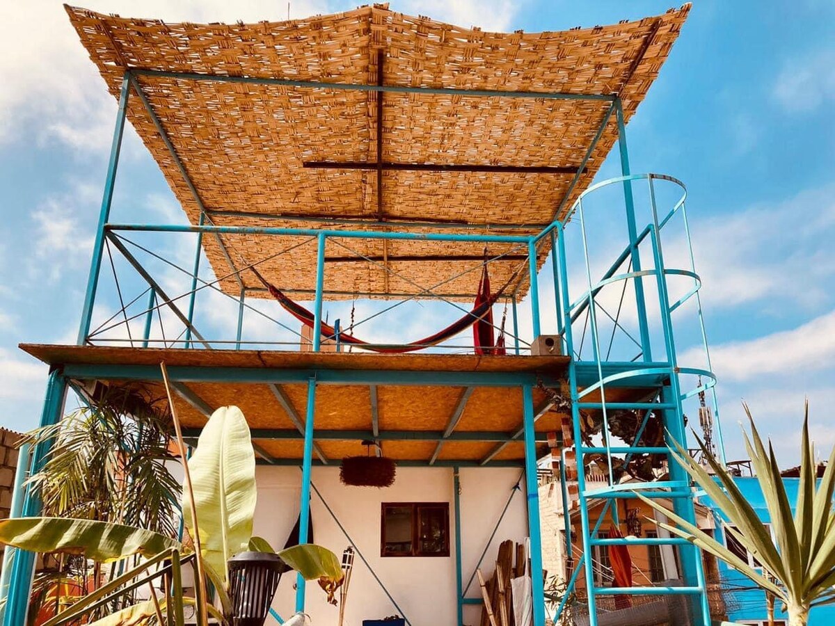 Se ofrecen diferentes cuartos amoblados (con o sin baño) en una Villa compartida repleta de espacios, plantas y arte, con roommates acogedores y tranquilos. Tiene una cocina en cada piso, un rooftop y un mirador con vista a los montes cercanos y al océano. Villa Solar está ubicada en un barrio auténtico lleno de espacios naturales sobrecogedores, y cerca a mercados, negocios y transportes. La casa es un remanso de paz para los soñadores que buscan un hogar para estancias cortas o largas.