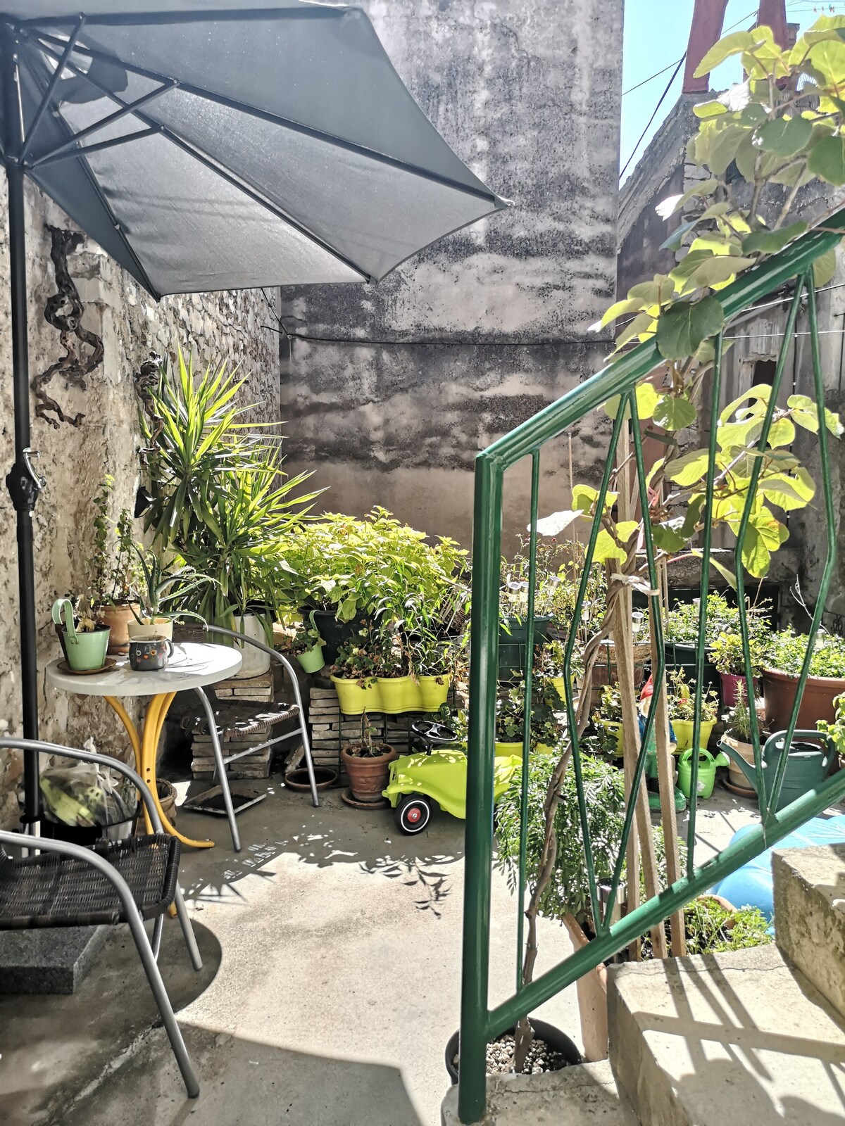 NO OTRO APARTAMENTO DE IKEA. EXCLUSIVA UBICACIÓN CÉNTRICA Y TRANQUILA EN EL CASCO ANTIGUO. Todos los muebles están hechos a mano y restaurados por mi marido y por mí. Mi apartamento tiene dos camas que también se pueden juntar en una cama tamaño king. Tiene una terraza PRIVADA utilizada solo por ti donde puedes sentarte y relajarte. Es el centro mismo, pero es muy tranquilo y pacífico. Se encuentra en la casa donde también vivo :) No ofrecemos estacionamiento. Aparcamiento más barato a unos 900 m en la playa de Banj.