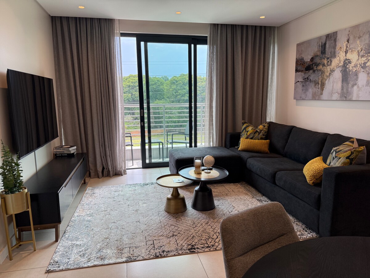 Hermosas puestas de sol desde este lujoso departamento en el piso 10. Incluye 2 dormitorios, balcón, TV de pantalla plana, cocina equipada con lavavajillas + microondas, lavadora, 2 baños con ducha (y una bañera) e inodoro para los huéspedes. ¡Incluye un sistema de energía de respaldo completo! El Masingita cuenta con una piscina al aire libre y alberga el famoso restaurante Bowl'd, que también alberga un bar. Masingita se encuentra a un tiro de piedra del tren Gautrain y a 3,2 km del centro comercial Sandton City Mall.