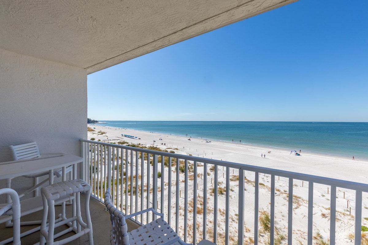 Oasis de condominio frente a la playa en el quinto piso: vistas al atardecer