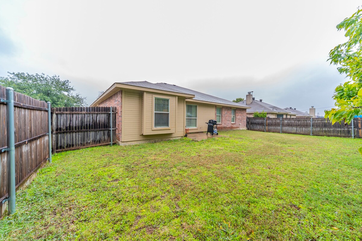 Nueva casa de 3 dormitorios ubicada en el corazón de Burleson, a solo 25 minutos del centro de Fort Worth. Cómoda entrada privada para 3 coches, garaje con cargador de vehículos eléctricos, 1600 pies cuadrados de espacio habitable, salón/comedor/cocina de concepto abierto, un dormitorio principal con baño privado y dos dormitorios con baño compartido. Fuera de la puerta trasera hay un patio trasero parcialmente vallado, y el porche delantero cuenta con un conjunto de bistró cubierto. ¡Perfecta para una familia que visita Fort Worth!