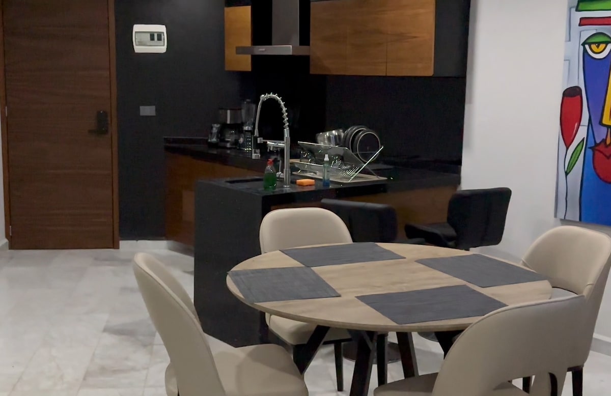 ¡Descubre una nueva forma de disfrutar Teques! Exclusivo departamento para 6 personas que combina lujo, comodidad y una ubicación privilegiada. Relájate en la alberca infinity con vista al lago, juega en la cancha de pádel, ejercítate en el gimnasio o disfruta en la zona kids. Todo lo que necesitas para una estancia inolvidable está aquí. • El condominio es familiar, por lo que se solicita mantener un ambiente respetuoso y sin fiestas.