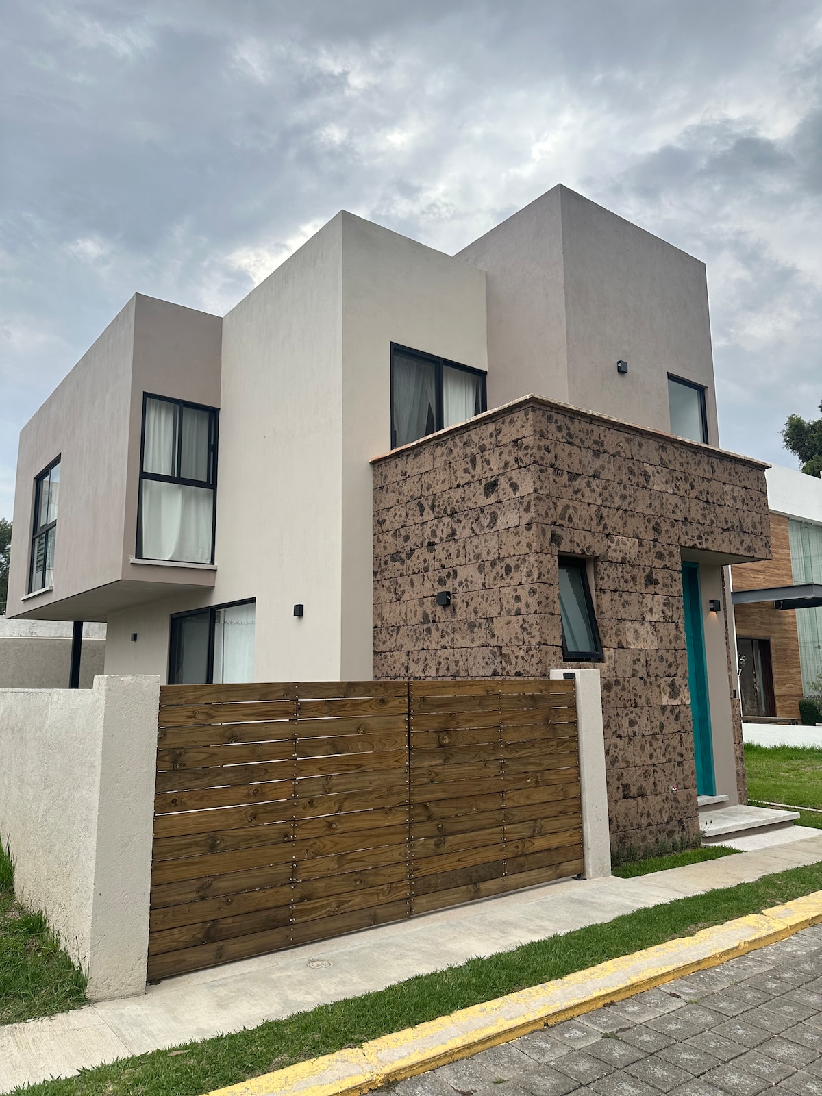 Acogedora casa estilo Toscano, ubicada en exclusivo fracc. A 20 min de Cholula y a 7 min del aeropuerto Disfruta de un espacio elegante, seguro, ideal para viajes en pareja, familia. Relájate en sus 2 bonitas habitaciones, la principal con su baño, secundaria con balcón, cuarto de TV con sofá cama tamaño matrimonial, cocina equipada y estacionamiento para 2 autos, jardín privado con área de descanso. Vive una experiencia de lujo y aventura rodeado de tranquilidad, diseño y naturaleza.