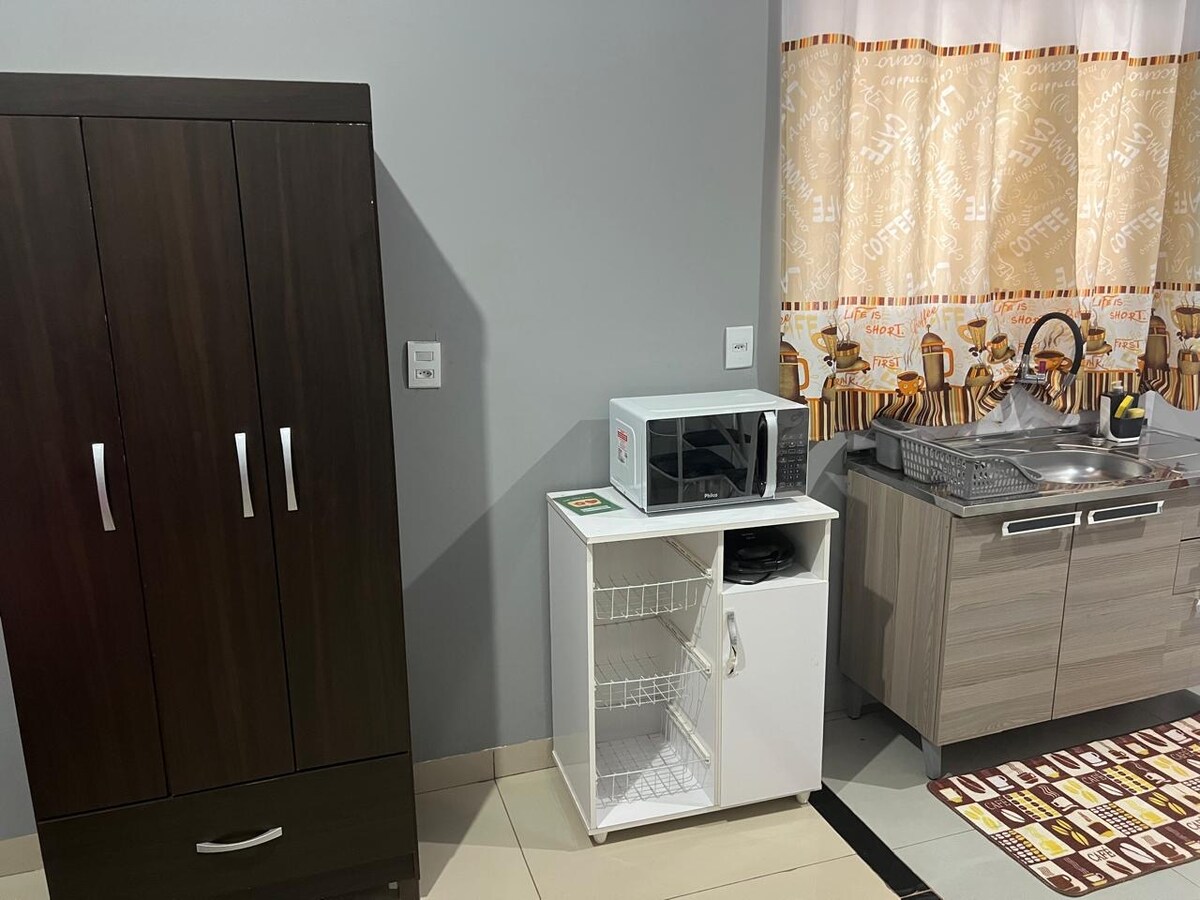 Cocina completa, ideal para aquellos que buscan comodidad y practicidad en un solo lugar. El espacio cuenta con: >Dormitorio con acogedora cama doble, > Aire acondicionado para tu comodidad y un escritorio con una silla ergonómica, ideal para la oficina en casa o para estudiar. Cocina funcional equipada con nevera, fogones y fregadero para platos, perfecta para preparar comidas sencillas. Baño completo, limpio y bien iluminado. Área en forma de L con lavandería
