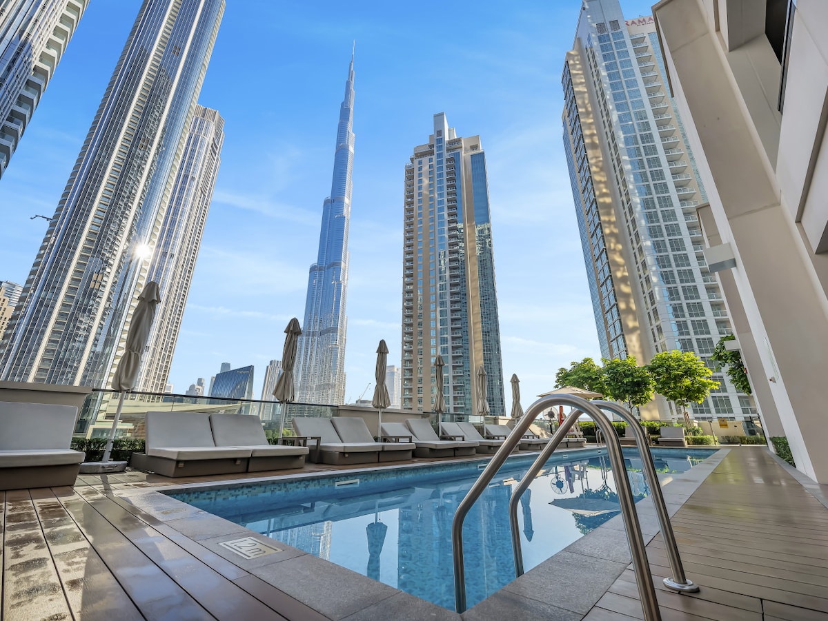 Magical Apt with Rooftop Pool & Burj Khalifa View!