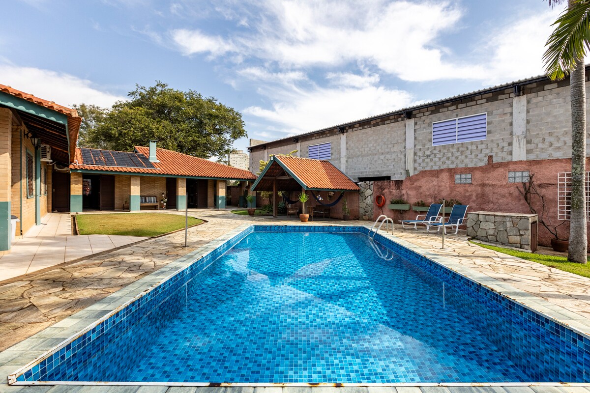 ¡Ven a relajarte y divertirte en nuestra granja! Situado en el corazón de la Serra do Japi, considerada reserva de la biosfera y patrimonio ambiental del Estado, contamos con una cancha polideportiva, piscina, sala de juegos con billar, sala de té, sala de eventos, dos áreas con parrillas (interna y externa), estufa a leña, estacionamiento. Hay 1 cocina, cinco dormitorios con capacidad para 16 personas, 8 baños completos (4 internos y 4 externos) y 2 salas de estar, una con chimenea. ¡Aceptamos mascotas!