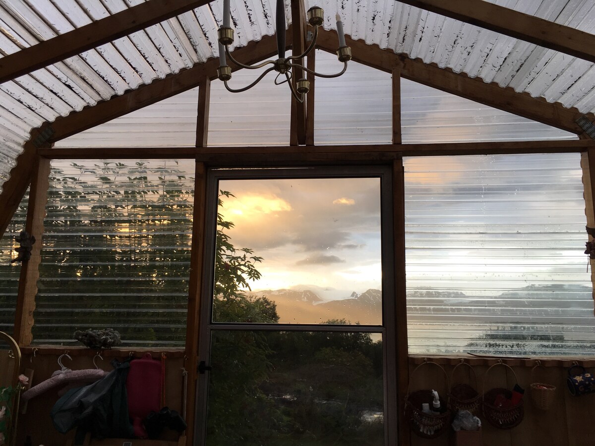La cabaña está cerca de la ciudad, ubicada en 10 acres con vistas a la cabeza del Beluga Slough. Te encantará mi alojamiento por los troncos de cola de paloma tallados a mano, la recolección de setas silvestres y la privacidad cerca de la ciudad. Mi alojamiento es bueno para parejas, aventureros solitarios, viajeros de negocios, familias (con niños) y amigos peludos (mascotas).