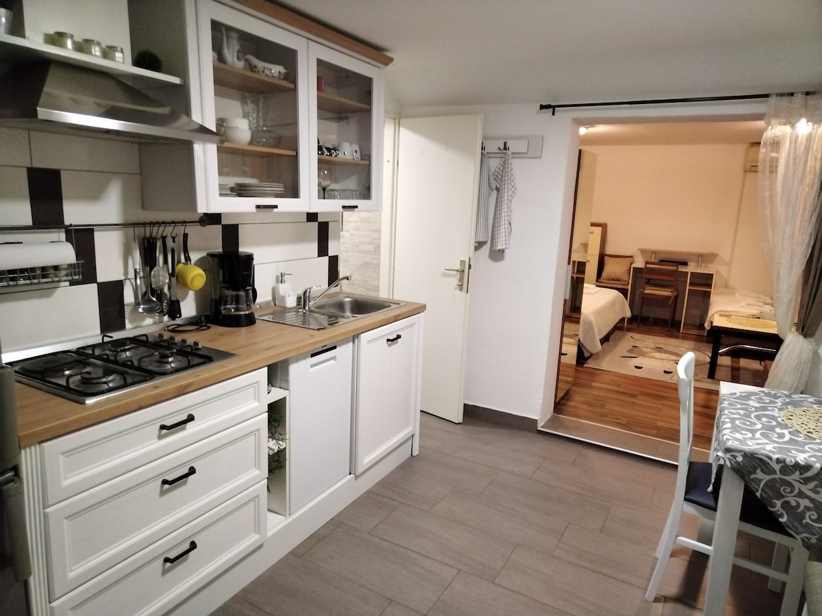 El apartamento se encuentra dentro de una casa familiar que se encuentra a 15 minutos a pie del centro de la ciudad, primera fila hasta el mar cerca de la playa y el hotel Kolovare. Nota: Tenemos mascotas ( dos perros). Se admiten a tus mascotas.