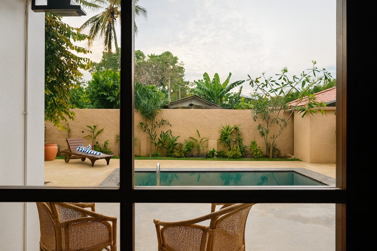 Nuestro bungalow frente a la playa en Wadduwa está lo suficientemente cerca del centro de Colombo como para reducir tu tiempo de viaje, pero lo suficientemente lejos como para disfrutar de un cambio de paisaje y ritmo. Esta espaciosa villa de cuatro dormitorios cuenta con una piscina al aire libre y una preciosa estancia junto al océano. El vasto jardín tiene un amplio espacio para que los niños corran, un partido de cricket improvisado o un evento de celebración.