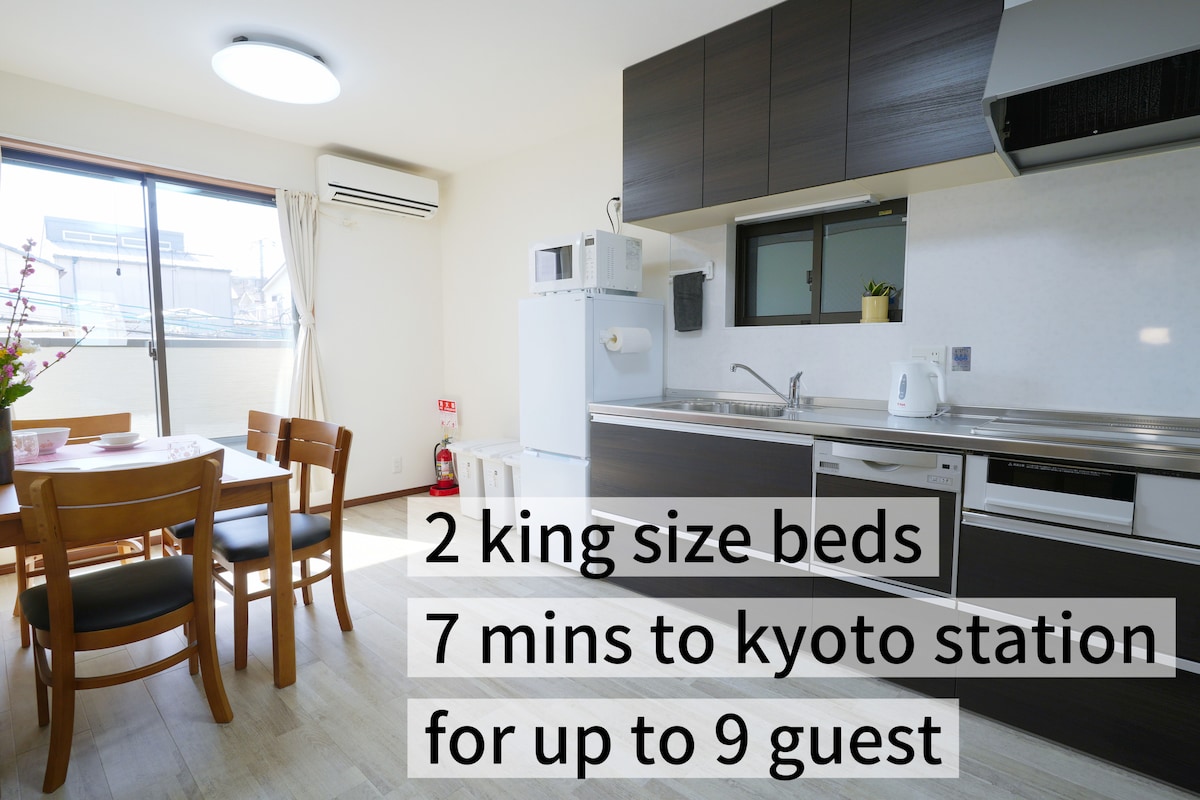 Estación de Kioto a 450 metros / Templo Tō-ji a 550 metros / Acuario de Kioto a 850 metros / Edificio completo de tres pisos / Capacidad máxima para 9 personas / Secadora incluida / ~Lotus~