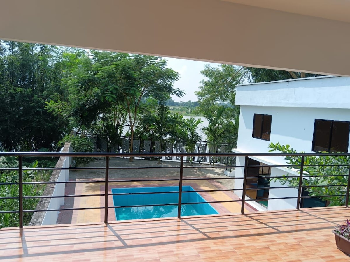 Sayantan, traducido como 'atardecer', da la bienvenida a reuniones familiares, escapadas de fin de semana para amigos o retiros en el lugar de trabajo. El edificio tiene 7 dormitorios en 2 plantas, todos con baño privado y una cocina en cada piso. Las instalaciones para conferencias están disponibles por una tarifa adicional. La tarifa publicada es para el uso completo de ambos pisos residenciales: la tarifa por habitación es de USD $ 30 con descuentos para estancias más largas. Disfruta de la vegetación, los pájaros y la paz lejos de la agitada ciudad.