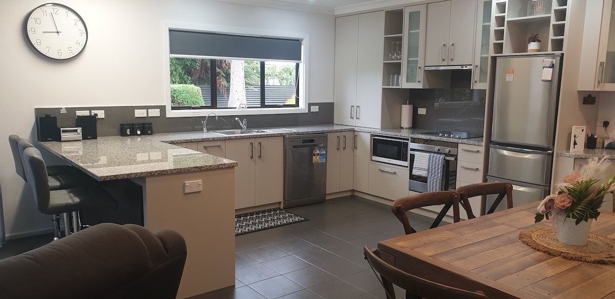 Relájate con toda la familia en tu refugio de Hokitika. Construida con cariño en 2023, esta casa es moderna pero hogareña. La casa está situada en Kaniere, Hokitika, a 600 metros del sendero para bicicletas Wilderness, de rutas para caminar y a 5 minutos en coche del municipio. Un patio trasero privado con vistas a las tierras de cultivo vecinas y a la avifauna nativa, linajes y pungas al norte. Disfruta sentado afuera y observando a los Tui comer las semillas de lino en temporada.