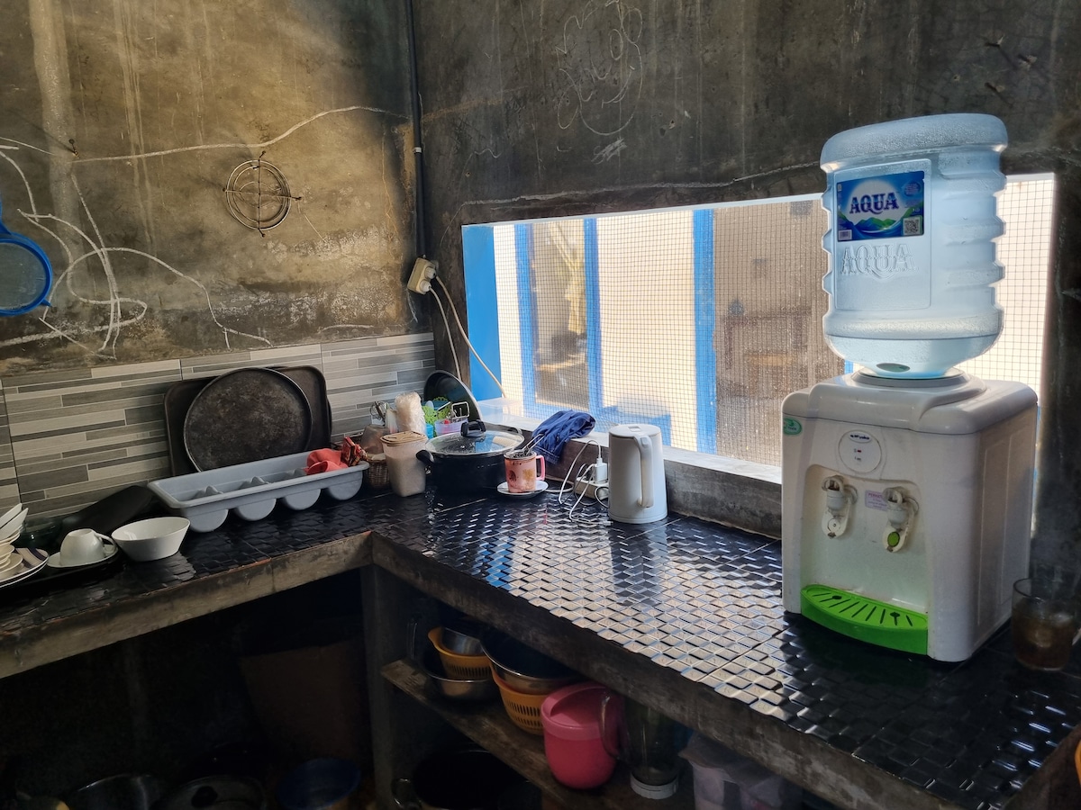 Kathy 's Place es una hermosa villa situada en el centro de KarimunJawa. La villa está compuesta por cinco dormitorios de invitados junto a una encantadora sala de estar central comunitaria que comprende una gran cocina comedor/comedor y una sala de reunión completa con TV de pantalla plana y reproductor de DVD. Dos de los cinco dormitorios tienen baño privado, los otros tres dormitorios comparten un baño. Todos los dormitorios tienen aire acondicionado (opcional en habitaciones con baño compartido) y las duchas tienen agua caliente, ¡increíble!