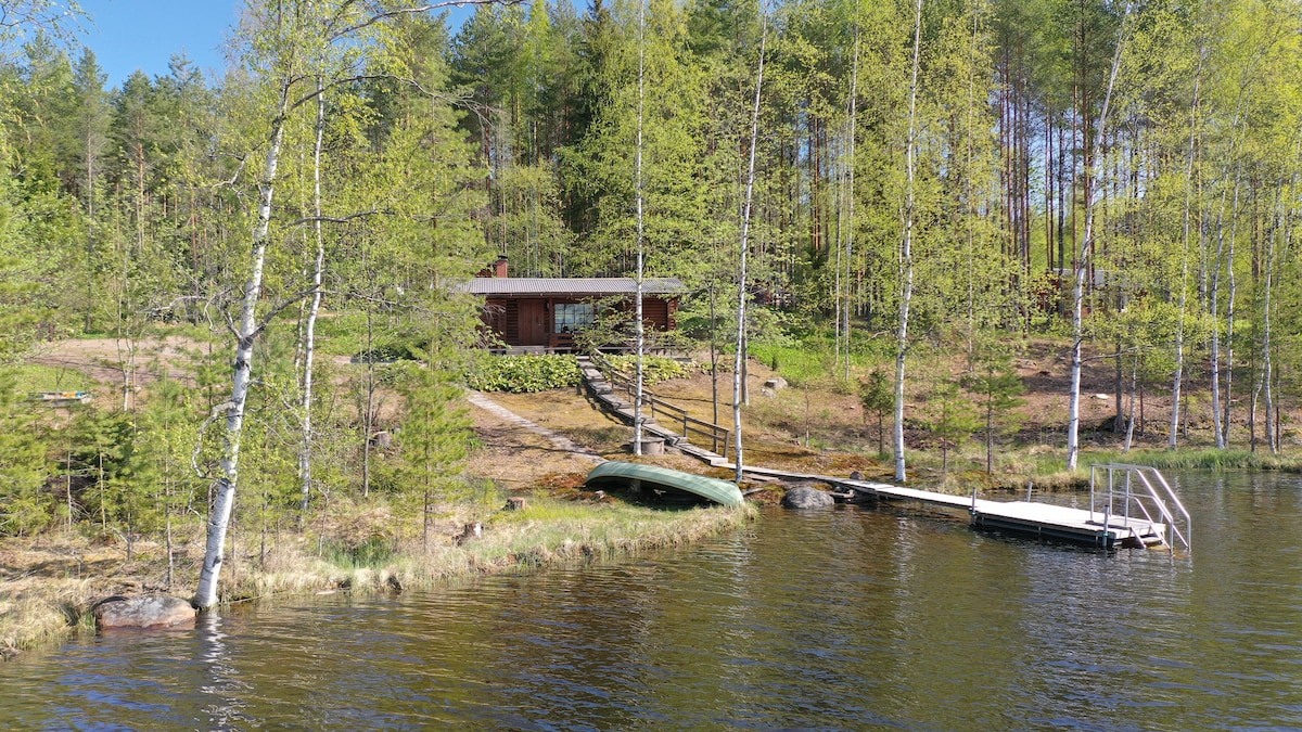 Esta acogedora cabaña te da la bienvenida para pasar escapadas relajantes y estancias de trabajo a distancia más largas en medio de la hermosa y tranquila naturaleza finlandesa. La cabaña tiene dos espaciosas cabinas, una cocina bien equipada y una buena sauna. El encantador estanque para nadar está a solo unos pasos y escaleras de la cabaña. Hay buen wifi, un gran césped soleado y no hay vecinos a la vista, por lo que puedes nadar en tu traje de cumpleaños si quieres :) La tienda de comestibles más cercana está a 12 minutos en coche.