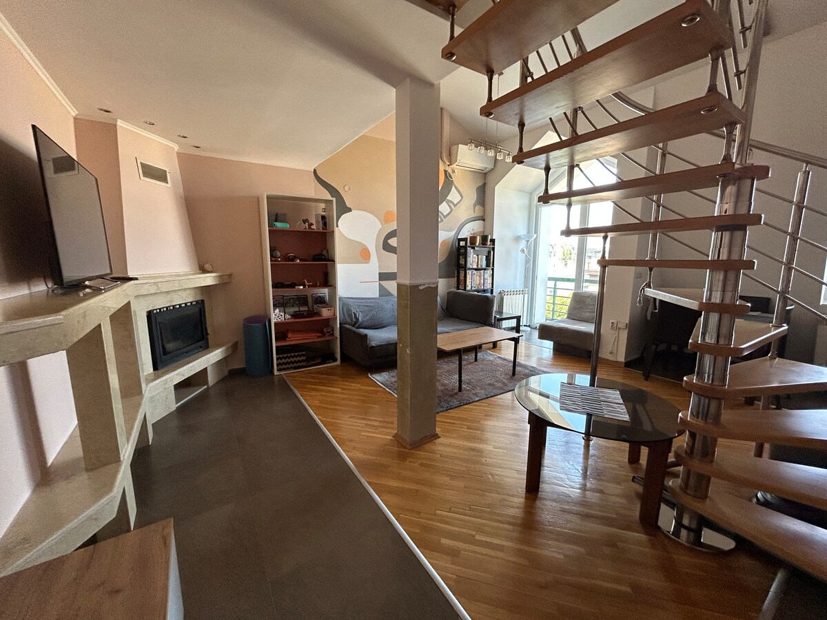 Stunning duplex apartment, recently renovated with modern and spacious design. Nestled in the best neighborhood of Skopje, everything is within walking distance. From the city center and landmarks to the best party places, restaurants and bars - you'll be in the heart of it all. Known for its high property values, this safe neighborhood ensures peace of mind during your stay. Experience the ultimate blend of convenience, style, safety, and a wonderful view in our magnificent duplex apartment