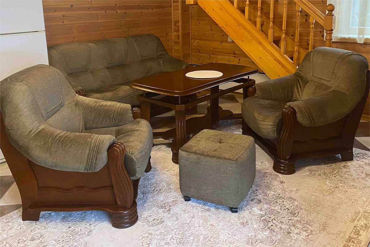 Place to escape from city noise and enjoy sound of nature. Our place is in the quiet garden area village with fenced territory, large terrace with canopy and garden sofas for relaxing days, private hot tub (additional fee) to warm up and relax in chill evenings and canopy with dining furniture set and grill for those who are grilling fans. Green territory will give guests relaxation and peace, indoors one can enjoy sauna and large TV with many apps, also a few table games.