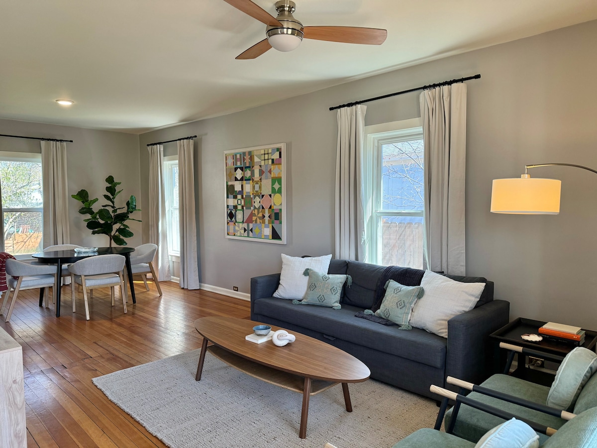 Este apartamento de 2 dormitorios/1 baño en la planta baja tiene capacidad para 4-6 huéspedes. Acceso fácil a la universidad y al centro de la ciudad. Camina hasta rutas de senderismo y cafés en minutos Somos aptos para familias y damos la bienvenida a perros bien educados. A los huéspedes les encanta nuestro espacio limpio, camas cómodas, acceso a la lavadora/secadora, TV con Netflix, cable + deportes y recomendaciones locales Trabaja desde casa con un espacio de trabajo + 5G Café/té, nevera/congelador, microondas, platos y sábanas incluidos Llegada/salida autónoma + estacionamiento gratuito