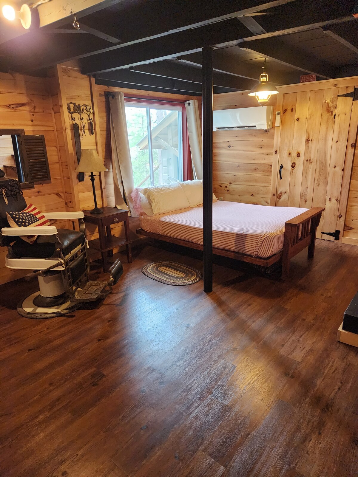 Relájate en una habitación única de estilo artesanal en la región de Mid Maine Lakes. Disfruta de una cama tamaño king, baño privado, comodidades modernas y nuestro acogedor porche de sillas Adirondack. Estamos ubicados entre el estanque Torsey y el lago Maranacook para disfrutar de un baño, un kayak o varias rutas de senderismo cercanas. Un fabuloso restaurante está en el lago a solo 1 milla de distancia, muchos otros están a 10 millas, y una gran comida para llevar está cerca. Nos encantaría ser tus anfitriones, y estamos abiertos todo el año.