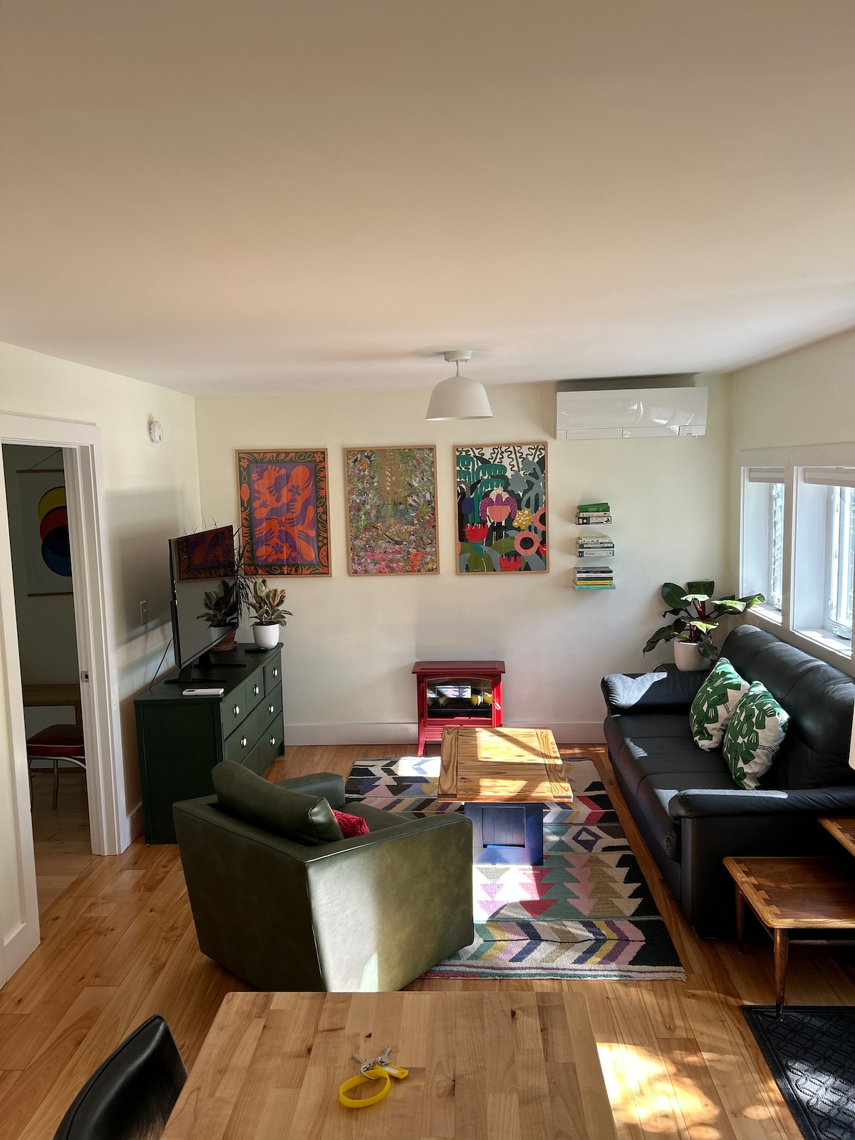 Un espacio de cama en altillo con sofá cama adicional opcional equipado con colchones de espuma ergonómica. Este espacio tiene aire acondicionado, así como calefacción y una increíble luz natural. ¡Baño completamente nuevo con cabezal de ducha de efecto lluvia! Una cocina completa con mininevera, espacio separado para congelador, horno, estufa y suministros para café/té. ¡Ubicación céntrica en Brunswick y tranquila! Justo enfrente del campo Whittier de Bowdoin y a 10 minutos a pie de Maine Street.