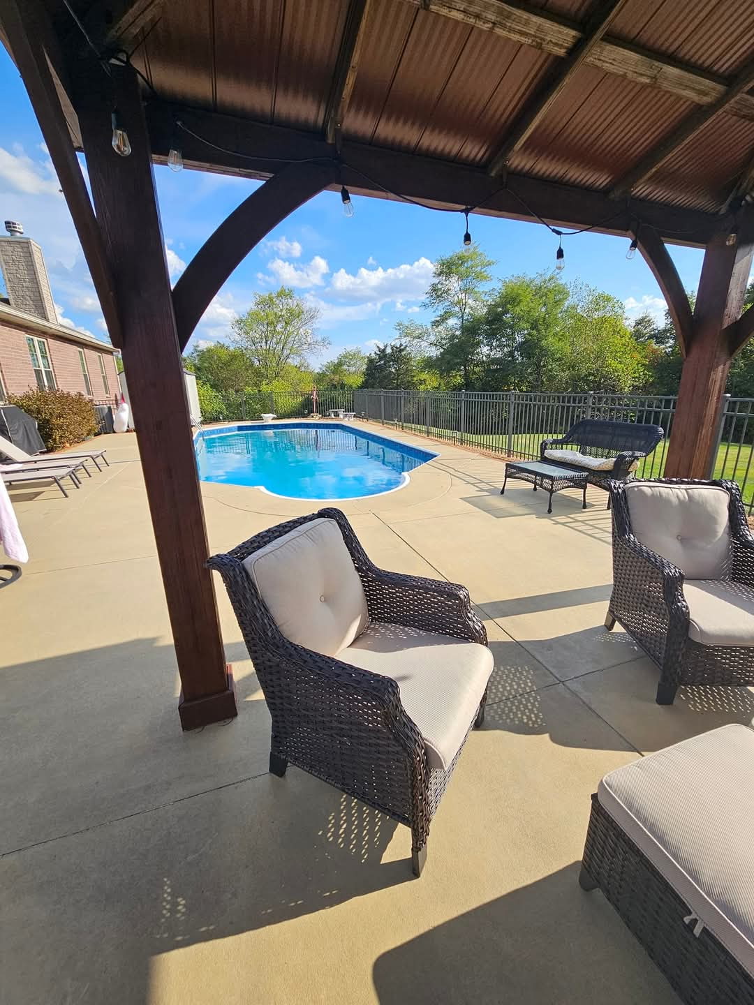 Este es un apartamento/suite de suegra que está conectado a mi casa. Tienes una puerta delantera y una puerta trasera separadas. Un dormitorio, cocina completa, cama tamaño queen y sofá cama tamaño queen en la sala de estar. Estacionamiento en la entrada. El patio trasero y el porche son espacios compartidos que incluyen una enorme piscina a nivel del suelo, un trampolín, un hermoso porche con mosquitero, un comedor al aire libre, un fogón, un jacuzzi y el patio trasero está completamente cercado. ¡La piscina ya está abierta! Se puede utilizar la lavandería y el cargador para vehículos eléctricos por un cargo adicional.
