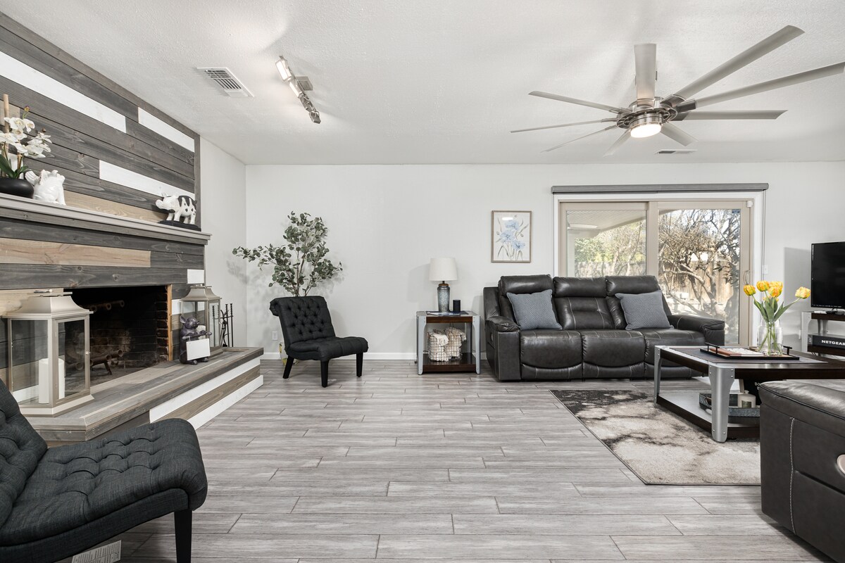 ¡Impresionante casa de campo digna de una revista! Disfruta de las vistas de Orange Grove y de la falda. ¡Cerca de Sequoia NP! ¡Cuenta con chimenea, cargador Tesla EV, barbacoa, bicicleta Peloton, sala de juegos, WiFi y ping pong!