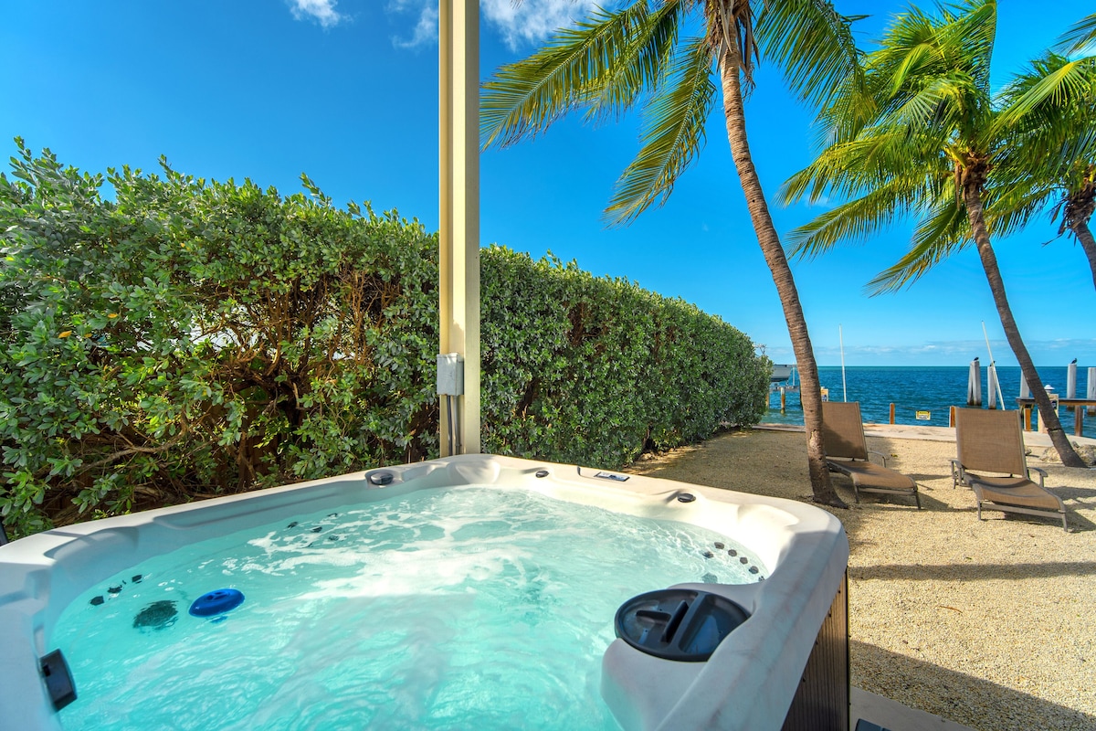 Pineapple Tides, unit #8, located at "The Tides at Vaca Cut", is a new 5 bedroom 4 bath home with a private pool and boat slip! Perfectly situated on the water with stunning views, sunrise and sunset colors, and DIRECT quick access to both the Atlantic Ocean and the Gulf of Mexico! It is the 8th Villa away from US1 to ensure a quiet stay! Enjoy lots of games, Ping Pong Table, 2 Bikes, Corn Hole, Fishing poles, Ring Toss, Beach and Pool Toys. The kitchen is full stocked with everything you need!