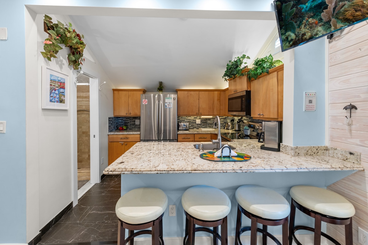 Slack Tide Cove Bienvenido a Slack Tide Cove, un impresionante refugio frente al mar de 3 dormitorios y 2 baños en el corazón de Marathon, Florida. Esta nueva construcción está elegantemente decorada con un tema costero, que ofrece la mezcla perfecta de lujo y relajación. Disfruta de impresionantes vistas de Boot Key Harbor desde la piscina o el balcón, y disfruta de 50 pies de muelle de aguas profundas con una estación de limpieza de peces para la captura de tu día.