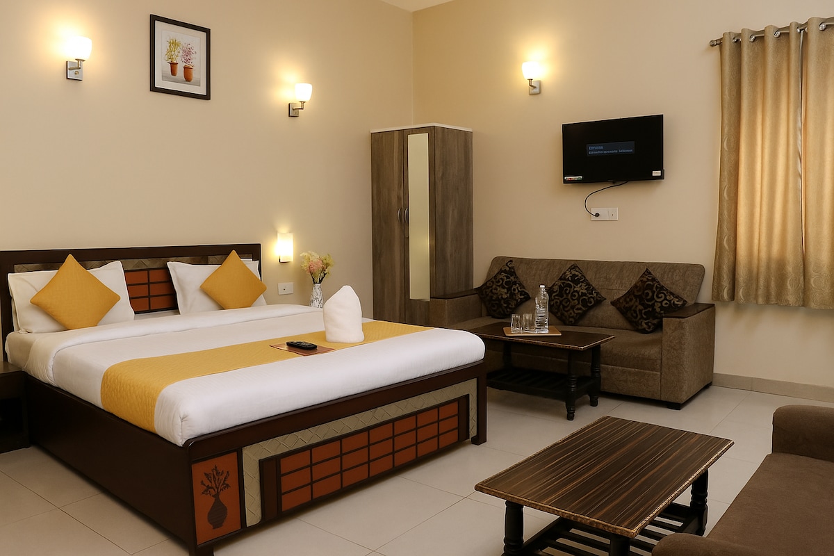 Modern 2BHK apartment offering comfort and convenience in a peaceful, well-connected area. Features two cozy bedrooms, stylish living room, equipped kitchen, Wi-Fi, AC, and balcony. Ideal for families, couples, friends get together or business travelers. Close to cafés, markets, metro & Airport— your perfect home away from home! UNMARRIED COUPLES ARE NOT ALLOWED