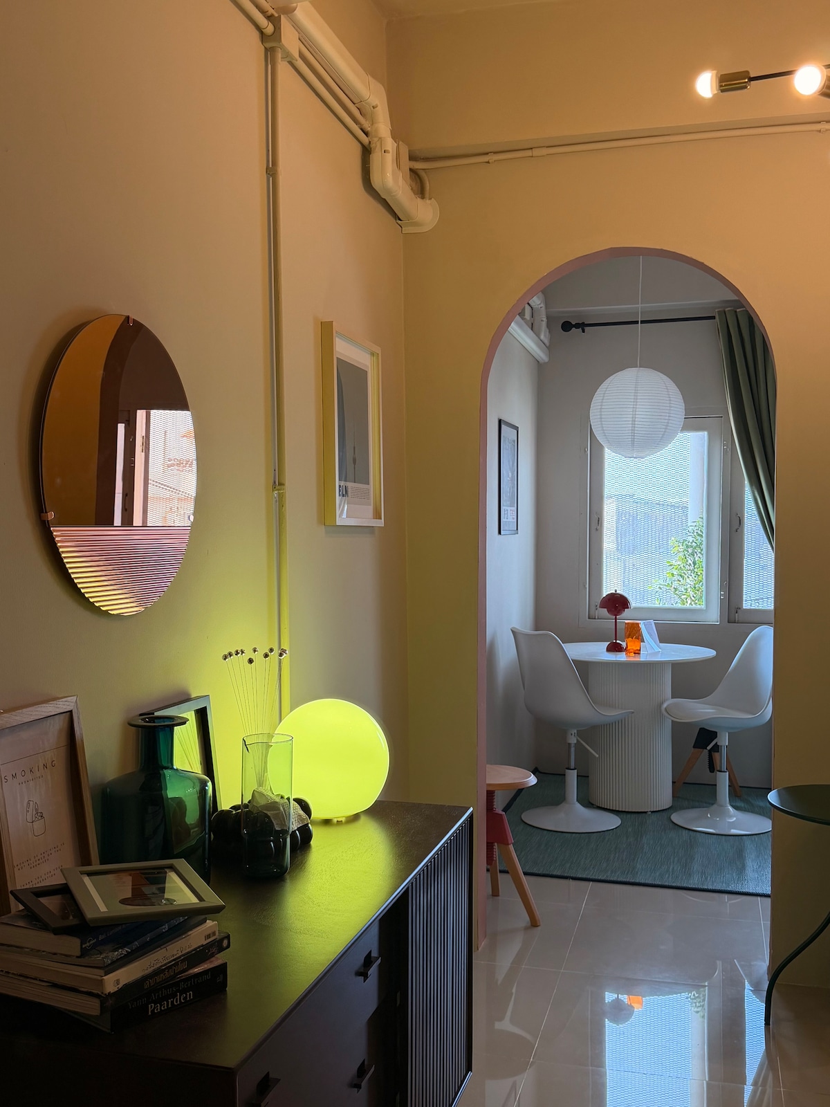 ☆ Welcome to your creative entire floor retreat in Bangkok ☆ Stay in a thoughtfully designed suite overlooking the peaceful Ong Ang Canal, just a 3-minute walk from Sam Yot MRT. This quiet space blends vintage charm with minimalist, modern design. Created by our family of architects, Poco House sits just above our local-loved café, Piccolo Vicolo. Thoughtfully renovated with warm wood, concrete textures, and greenery, it’s a calm escape in the heart of Bangkok’s historic Phra Nakhon district.