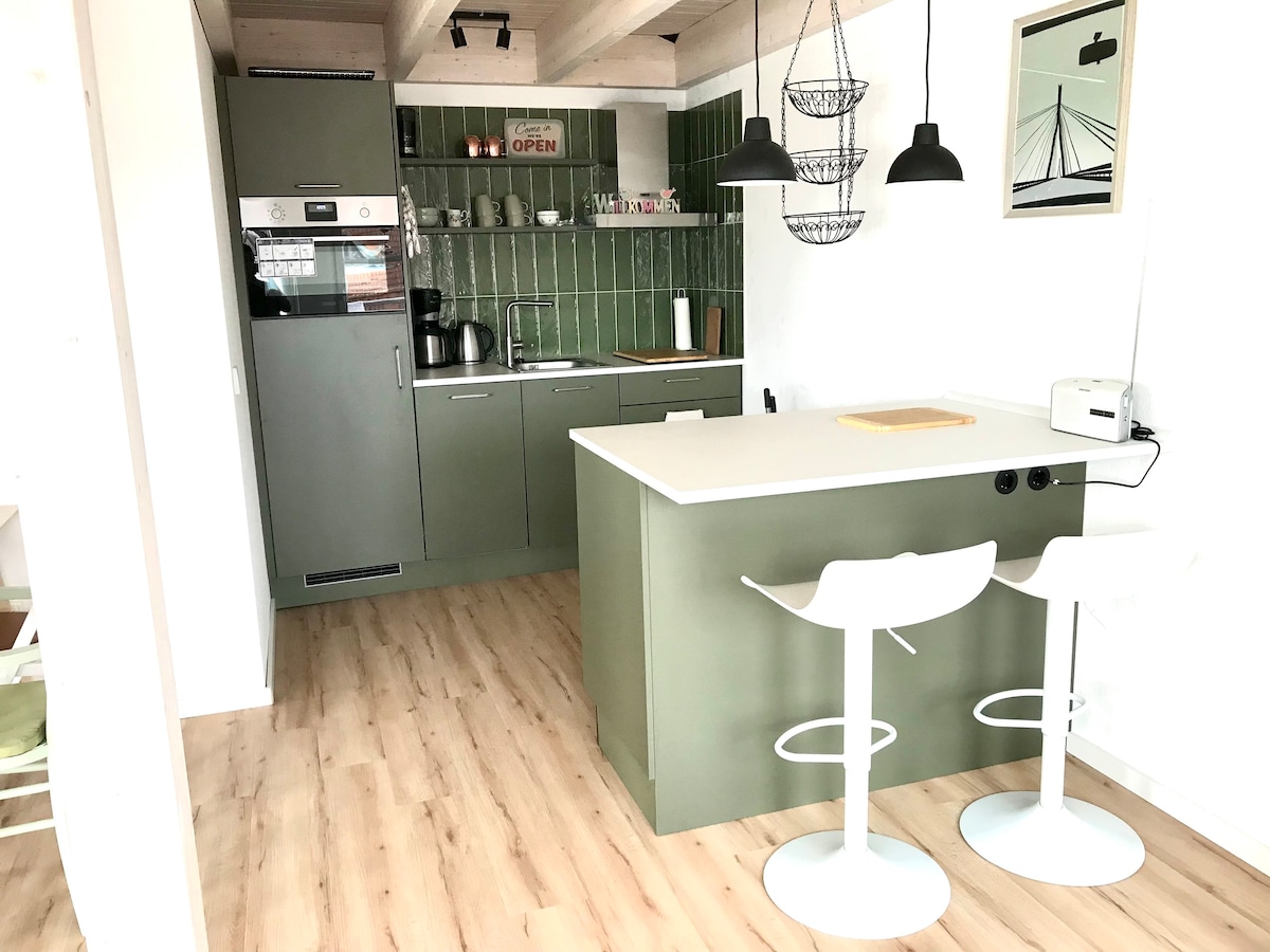 ¡Bienvenido! Esta encantadora casa de campo junto al mar tiene 46 metros cuadrados y consta de dos niveles: cocina/zona de comedor + baño en la planta baja y área de estudio para dormir/juegos en el piso de arriba. Situado a 150 metros del puerto en la hermosa Heikendorf. Tienes acceso a un trampolín en el suelo, una canoa y juguetes interiores y exteriores. Tenemos dos conejos a los que les encanta la atención. Somos una familia estadounidense-alemana y queremos que tus vacaciones sean inolvidables.