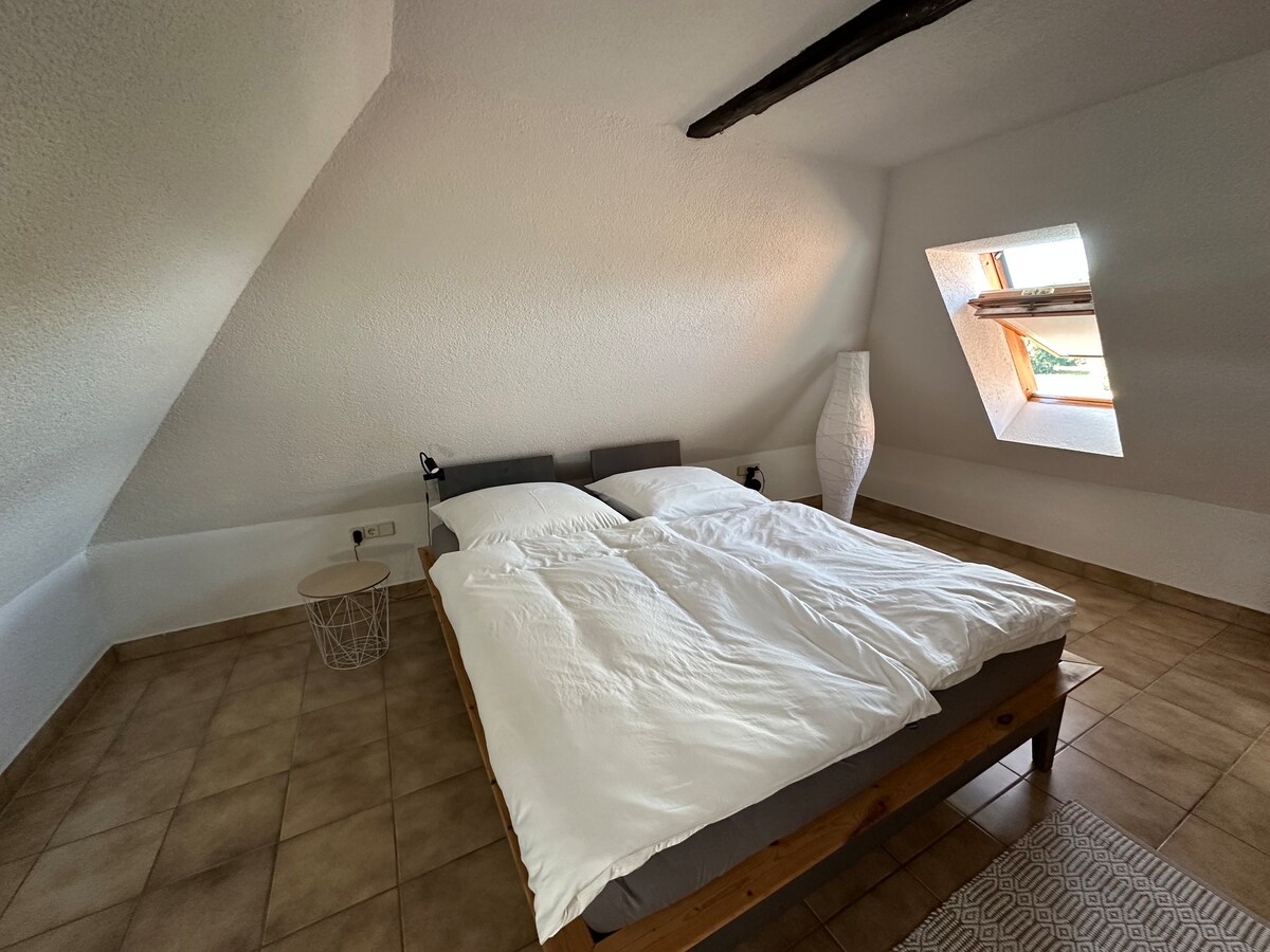 ¡Hola! Alquilo un ático de 54 m² (segunda planta) con un gran balcón y vistas a Lugberg y, con buena visibilidad, a la Suiza sajona. El apartamento es adecuado para 2-4 personas y está totalmente equipado. Tiene 1 dormitorio (cama doble) y una sala de estar con TV, zona de estar y un sofá cama (1,40x2 m). La cocina tiene fogones, microondas, zona de estar y todo lo necesario para cocinar o hornear. El baño está equipado con inodoro, lavabo y ducha.
