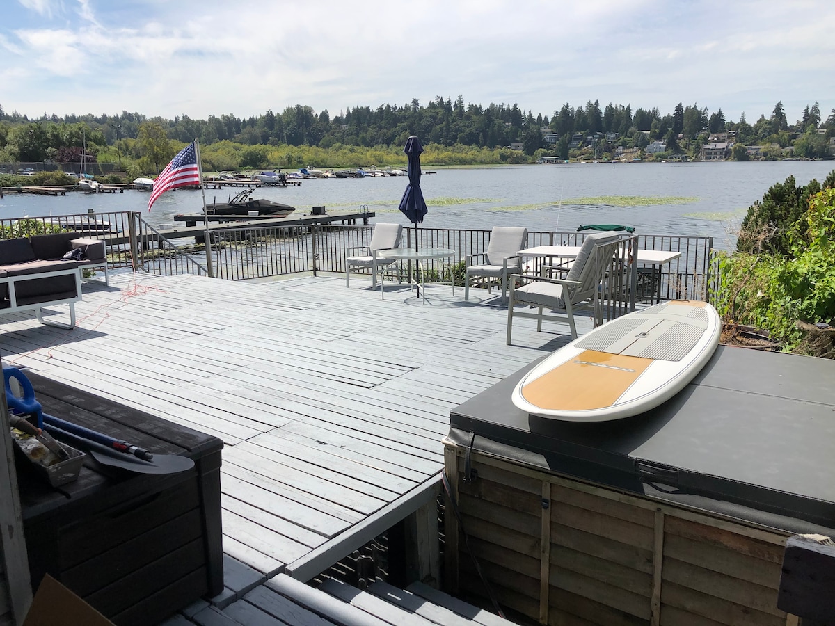 Todas nuestras propiedades se limpian y desinfectan a fondo con Lysol entre estadías. Increíble ubicación castillo francés directamente en el lago Washington. gran terraza y bañera de hidromasaje con un montón de asientos para disfrutar de la vista y el muelle con vistas al lago Washington. Vistas por toda la casa. Se proporcionan tablas de remo y juguetes acuáticos. ¡Disfruta del hermoso lago Washington en esta increíble casa! Convenientemente ubicado dentro de .15 millas del puerto deportivo de Carillon Point 1 milla del centro de Kirkland, 2 millas del centro de Bellevue