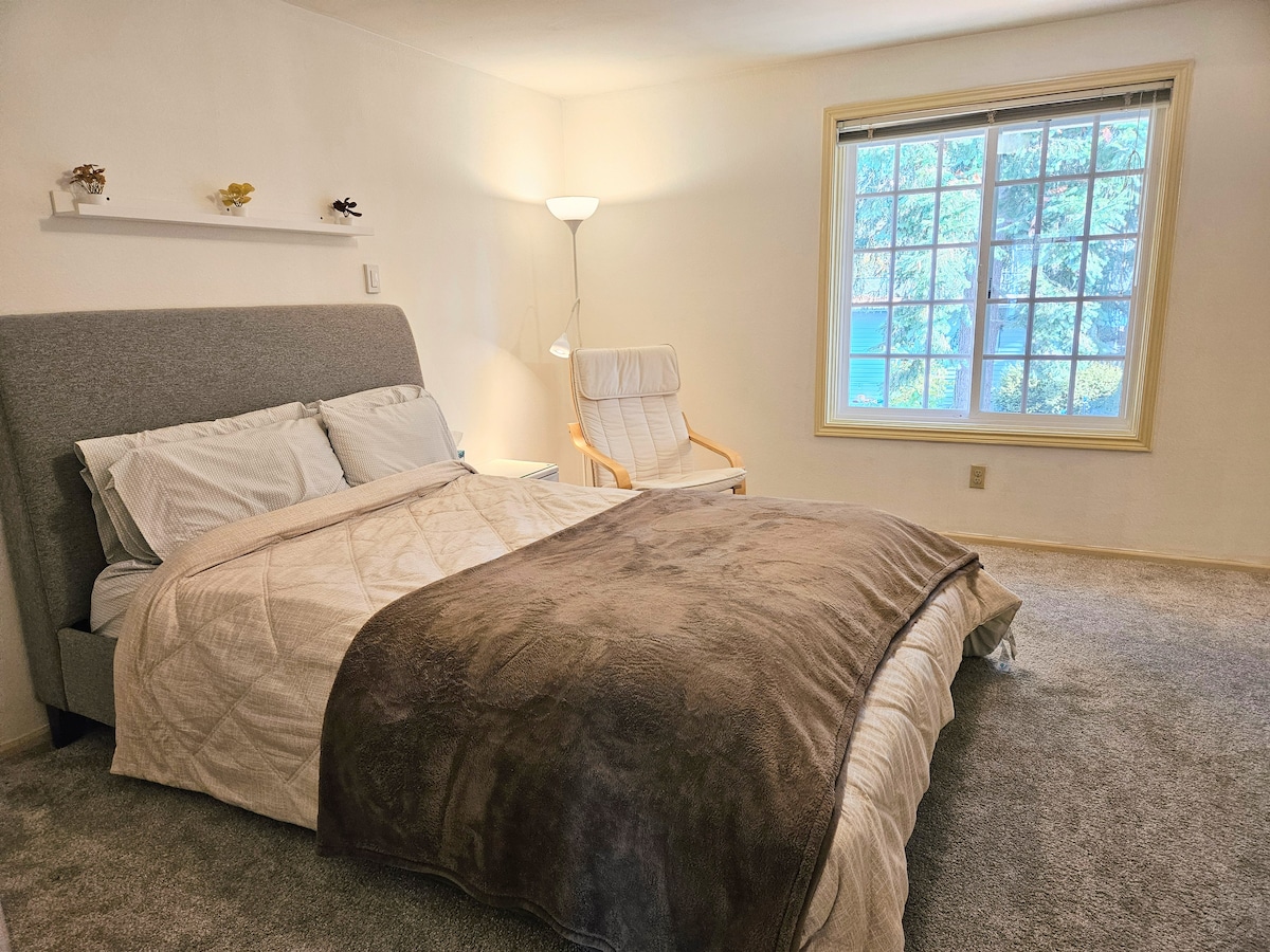 Relájate en nuestra acogedora suite a nivel de jardín con entrada privada, perfecta para un máximo de 4 personas. Cuenta con una cama tamaño queen con sábanas de calidad, cocina totalmente equipada, bañera con patas, chimenea, wifi, aire acondicionado, lavadora/secadora y aparcamiento gratuito en la calle. Disfruta de artículos de tocador, café, té y aperitivos de cortesía. Vivimos arriba, pero la suite es totalmente privada y toda tuya. Ubicado en la tranquila Maple Leaf, a pocos minutos del tren ligero Northgate y de la I-5 para un acceso rápido al centro de la ciudad. ¡Reserva tu estancia y siéntete en casa!