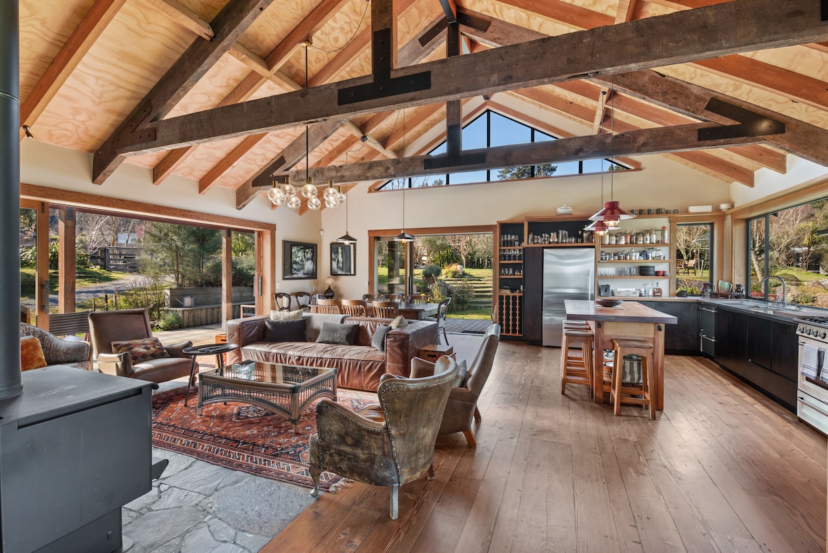 Luxury retreat with stunning views of bush, countryside, and Kuratau river. Perfect romantic getaway for couples featuring modern design and premium finishes. Unwind by the indoor fireplace, soak in the outdoor bath under stars, lounge on outdoor furniture in summer, or relax on the sunny window seats in this peaceful rural setting. Explore nearby bush walks, lake trails, lake and river swims, and mountain biking tracks. Ideal base for Tongariro Crossing and Mt. Ruapehu adventures.