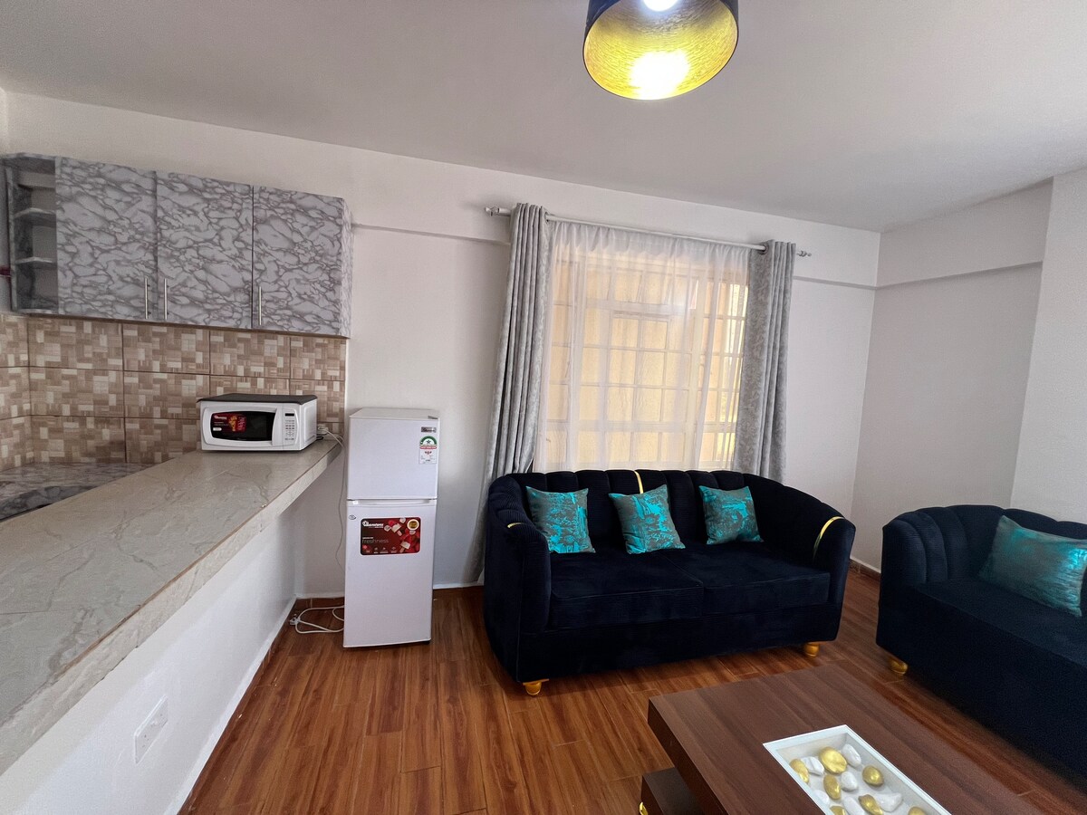 Fully furnished One bedroom apartment located along Mombasa road Behind Next-gen Mall,15 mins drive to JKIA , near Wilson Airport, SGR, Capital center,The Eka Hotel, Ole Sereni, next to the Curve. 15 min drive to CBD