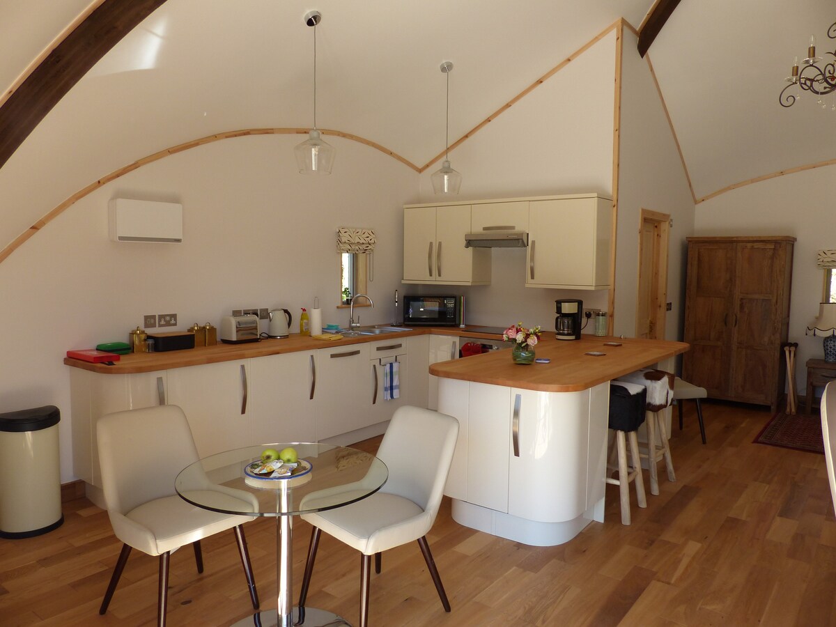 Orchard Cottage is a luxurious, high quality, open plan dome-shaped cottage. It has a super king sized bed, lounge area with wood-fired stove and 55” TV with Freesat, wi-fi, fully-equipped kitchen area and spacious shower room. It is fully insulated, for cosy stays all year round. It is set in the grounds of Ballawyllin Farm within our orchard area. It has its own outside patio area, exclusive access to an outdoor hot tub, and shared access to a sauna, set in a separate patio area.
