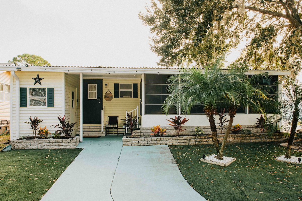 Te damos la bienvenida a Bitty Bliss, ¡tu acogedora escapada a Tiny Cottage! Ubicado a solo 20 minutos de Disney y Universal, con tiendas y restaurantes a solo 5 minutos, es perfecto para la relajación y la aventura. Disfruta de fantásticas comodidades como pickleball, minigolf, un nuevo gimnasio y una sala de recreación, ¡todo sin mascotas sin humo y sin complicaciones sin tarifas de centro vacacional o estacionamiento! Duerme cómodo en la cama tamaño queen de un dormitorio o en el sofá cama súper acogedor, con capacidad para hasta cuatro huéspedes. Encanto, comodidad y diversión en un solo lugar