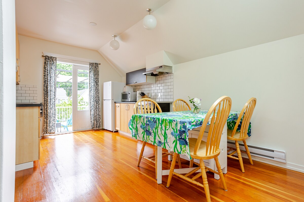 Disfruta de la vida en el centro de la ciudad en tu propio apartamento tipo estudio en este barrio popular y ecléctico, el extremo oeste. A poca distancia a pie del parque Stanley, el malecón, el pueblo de Davie, la calle Robson, autobuses/trenes y excelentes restaurantes y cafeterías. A solo 20 minutos en coche de las montañas locales y del ferry a la isla.