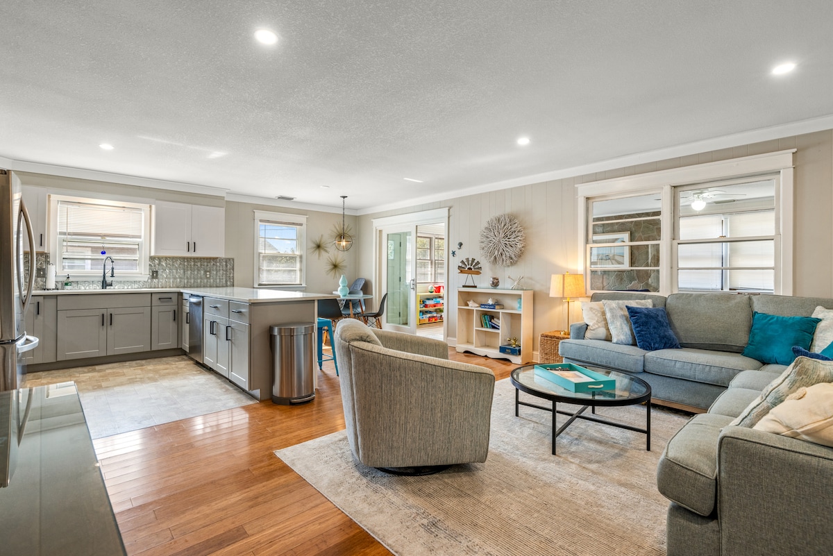 ¡Bienvenido! Una parte de todas las estancias se donan a la SPCA. En el corazón de los Outer Banks, cerca de la playa, sonido, restaurantes, tiendas y atracciones. Toda nuestra planta baja remodelada ofrece 2 HABITACIONES grandes: una ENORME con una cama tamaño queen con colchón Casper, sábanas, vestidor, armario y TV con Netflix; la otra es un comedor y escritorio con Keurig y cafetería completa. La cocina pequeña tiene nevera, doble placa calefactora, microondas, fregadero grande, lavadora/secadora, etc. También hay una zona de estar al aire libre y parrillas de carbón.