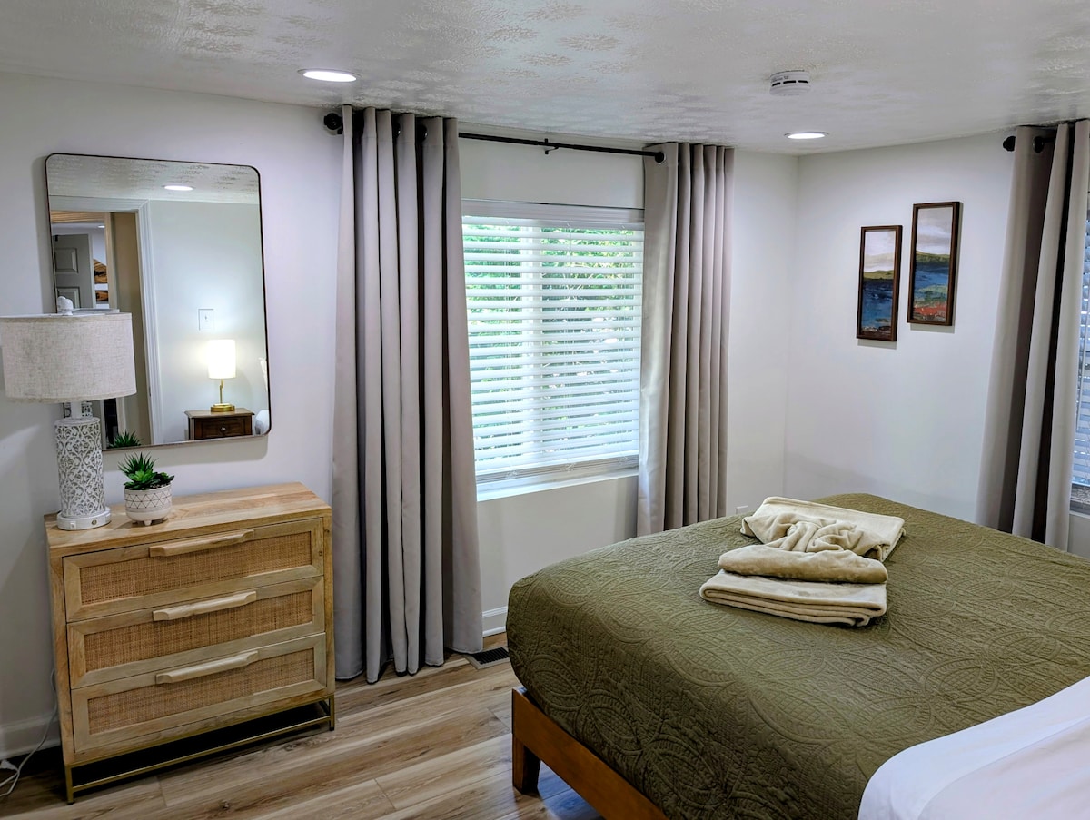 ¿Buscas una escapada relajante? ¡Este es el lugar para ti! Relájate en la bañera de hidromasaje y luego ve una película en el televisor 4K de 65 pulgadas. Esta casa tiene una cocina totalmente amueblada con una barra de café y todos los utensilios de cocina básicos que necesitas. Cada dormitorio tiene una televisión inteligente y un colchón de espuma viscoelástica increíblemente cómodo para que disfrutes del mejor sueño nocturno que hayas tenido. Este alojamiento está a menos de 10 minutos del centro de la ciudad y, si cruzas la calle hasta Harby's, ¡puedes comer una de las mejores pizzas de Knoxville!