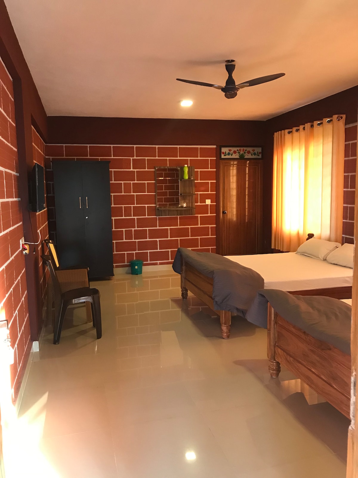 «RED BRICKS INN», la delicia de un viajero es un destino elegido entre el alojamiento de Coorg. Red Bricks Inn ofrece una gran comodidad a familias, parejas y ejecutivos de negocios con fácil acceso a los destinos turísticos más visitados, Red Bricks Inn está a solo 2 minutos del puesto de autobuses del gobierno. Es una estructura única con amplio espacio de aparcamiento en la bodega y sus alrededores.