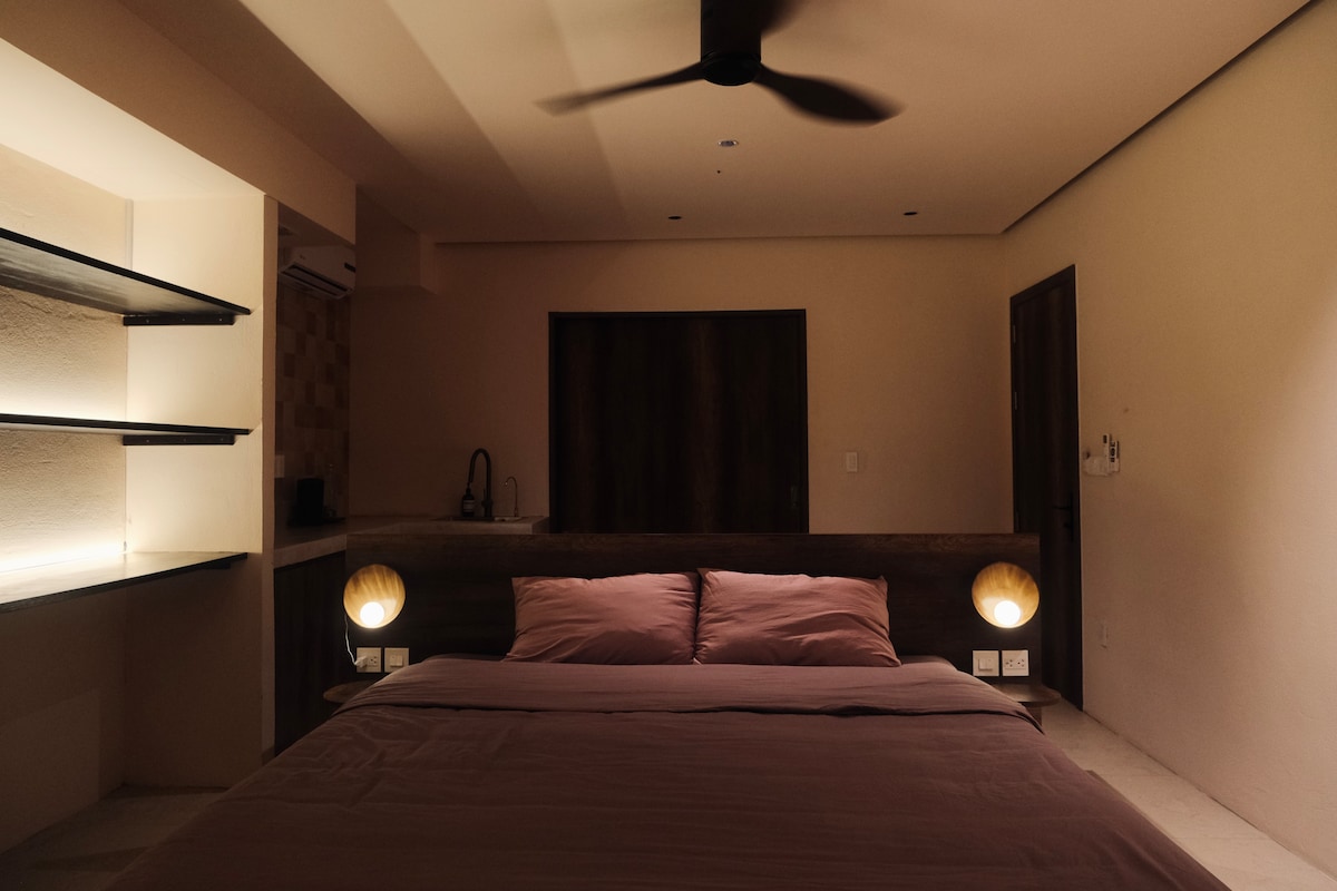 Esta cabaña está construida con amor por mi padre, y yo, un recién graduado de la Generación Z, ayudé a decorarla. ***Aspectos destacados: Espacio rodeado de naturaleza: nuestra habitación está rodeada de una exuberante vegetación, lo que crea un ambiente fresco. Amplia sala de estar: la cabaña cuenta con más de 40 m² de espacio cuidadosamente diseñado, que incluye un acogedor dormitorio, escritorio, amplio baño y balcón abierto. Gran cocina compartida: disfruta cocinando y compartiendo comidas en nuestra cocina comunitaria de 200 m². Jardín de frutas: jacas, cocos, durianos, papayas.